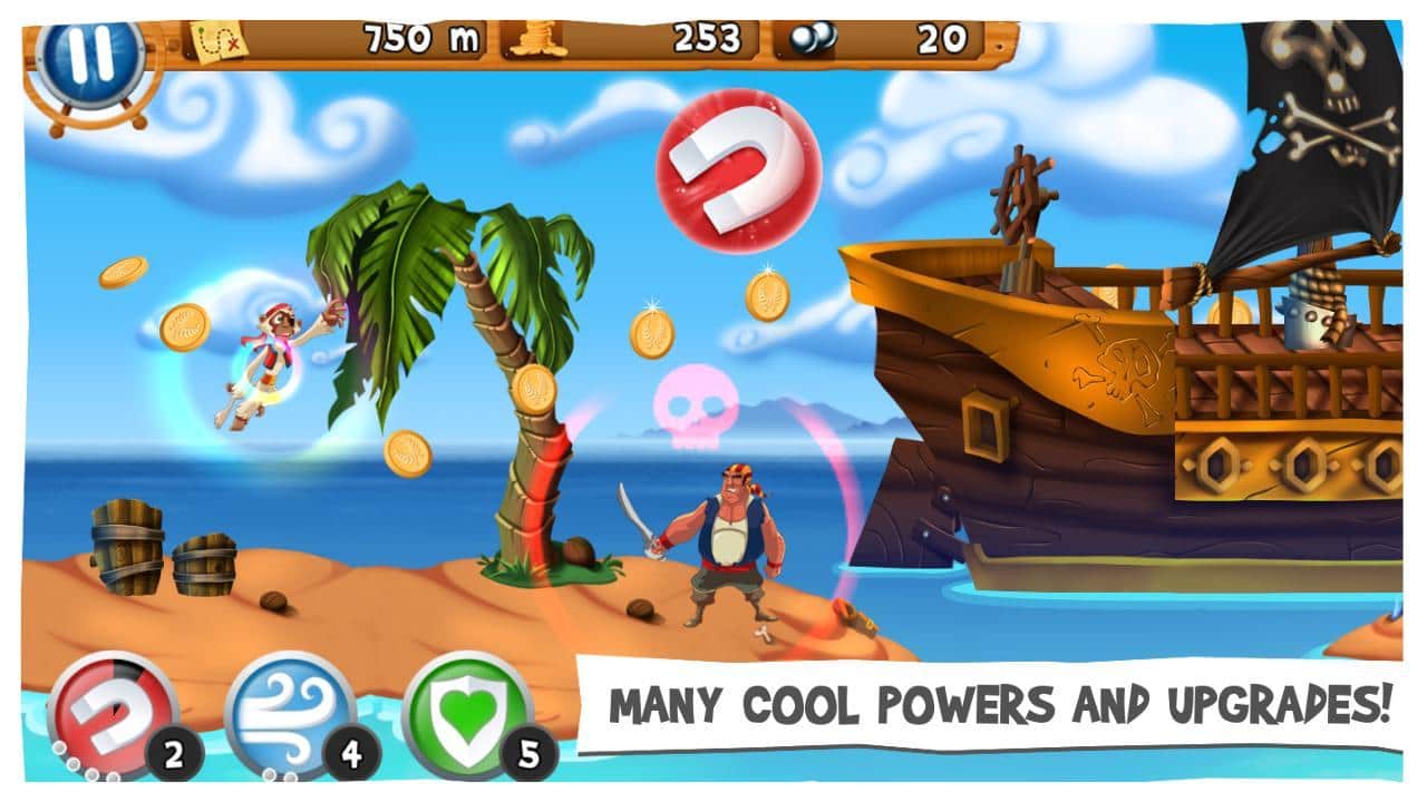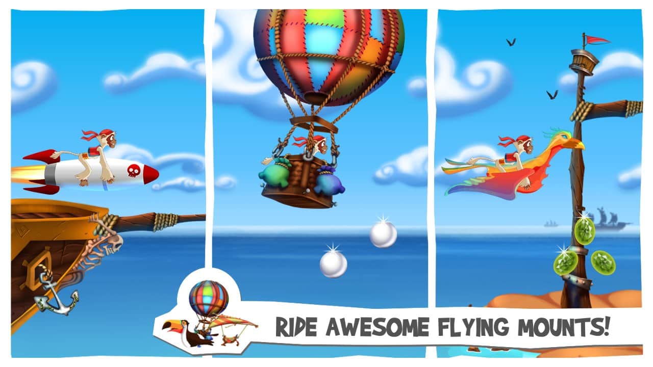 Bounty Monkey - в этой яркой аркаде-платформере вы играете за маленькую, но очень шуструю обезьянку. Это проворное существо украло у пиратов сокровища и теперь бежит, что есть духу от них к своему хозяину. Прыгайте, передвигайтесь на воздушных средствах, собирайте по пути золотые монетки, украшения и золотую рыбку. На приобретенный капитал покупайте новые средства передвижения и бонусы!