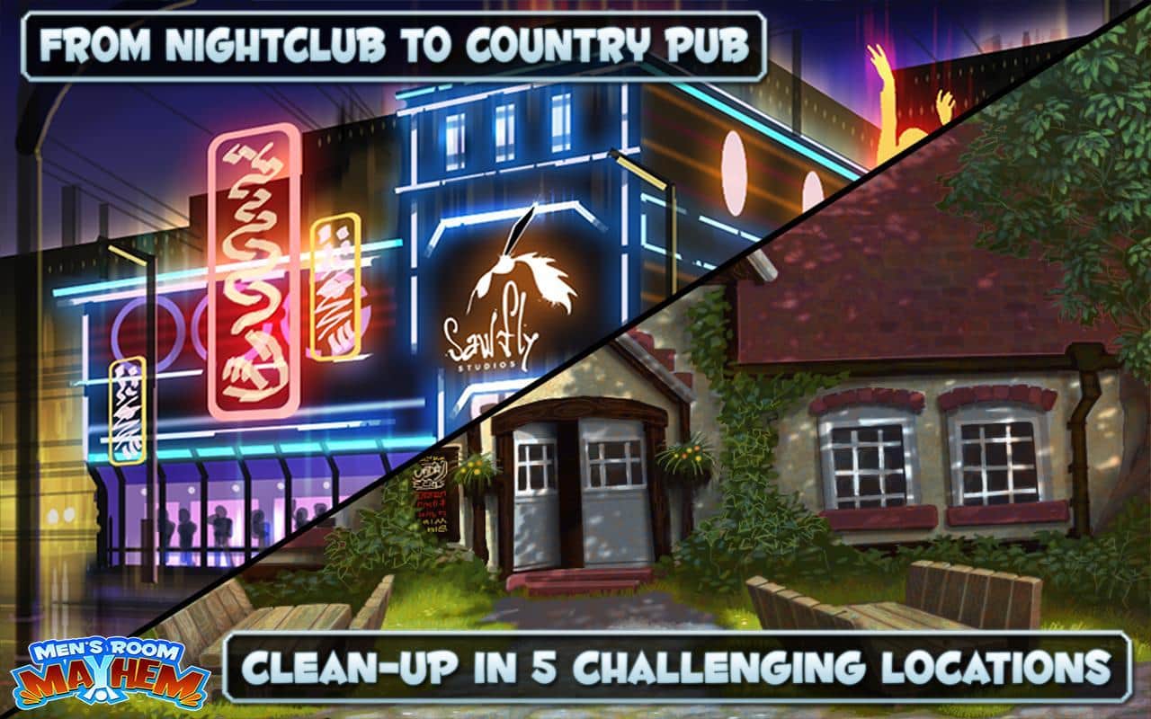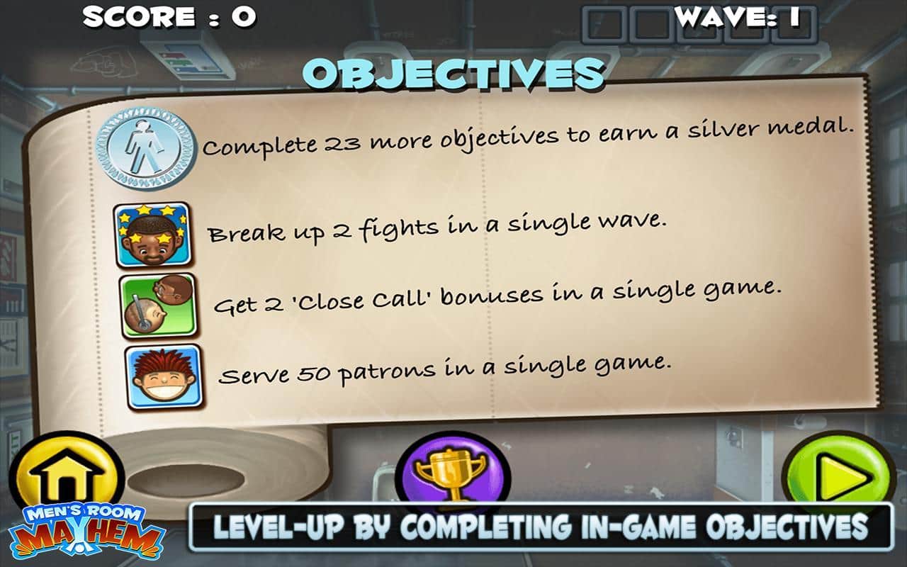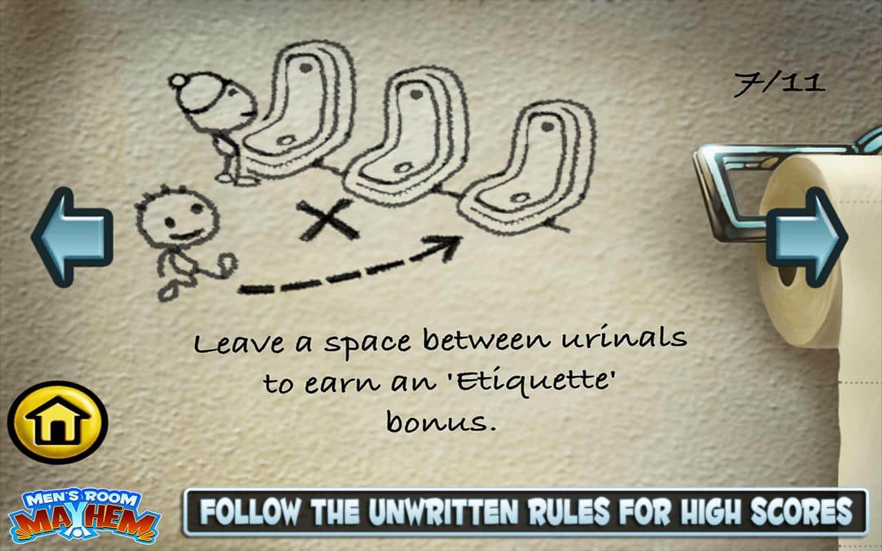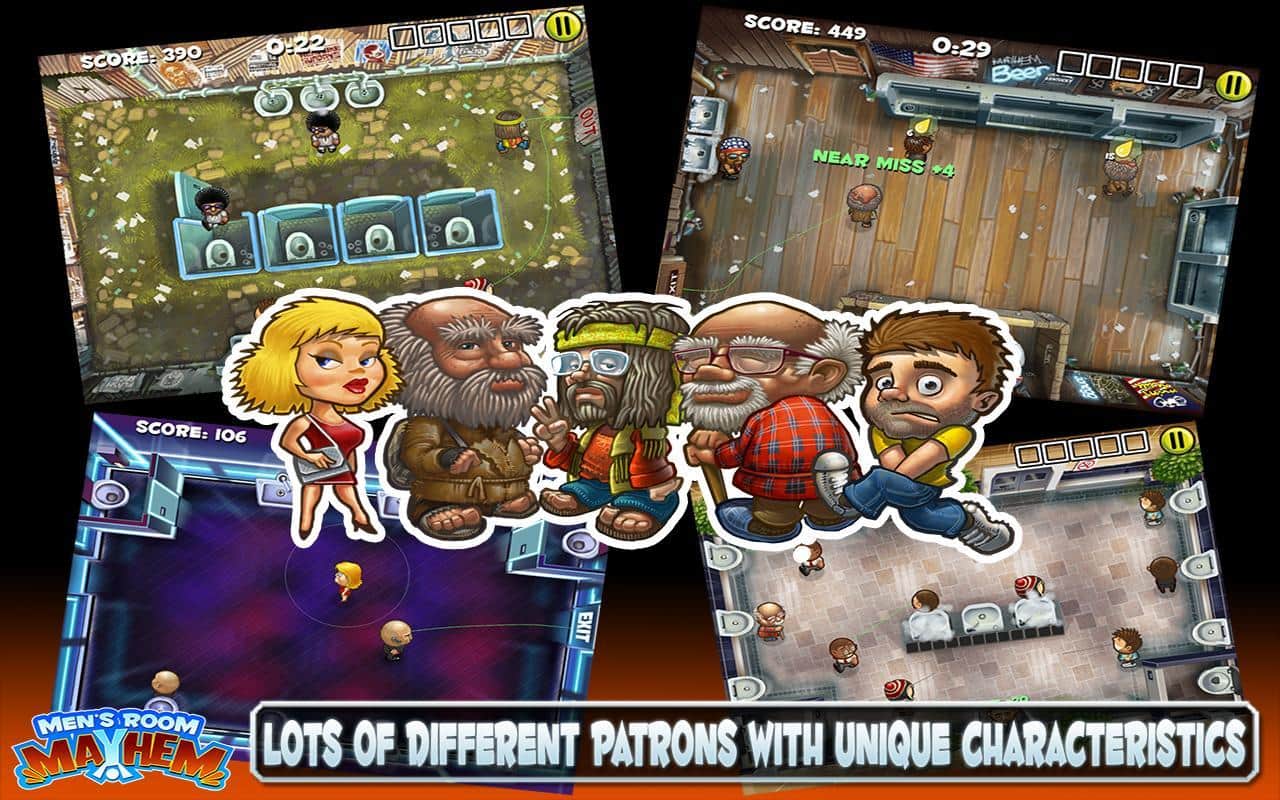 Men's Room Mayhem - новая игра на скорость для андроид очень напоминает по геймплею серию игр типа Diner Dash. Однако эта игра имеет пикантную изюминку - управляться быстро и качественно придется в уборной. В ваши обязанности входит: