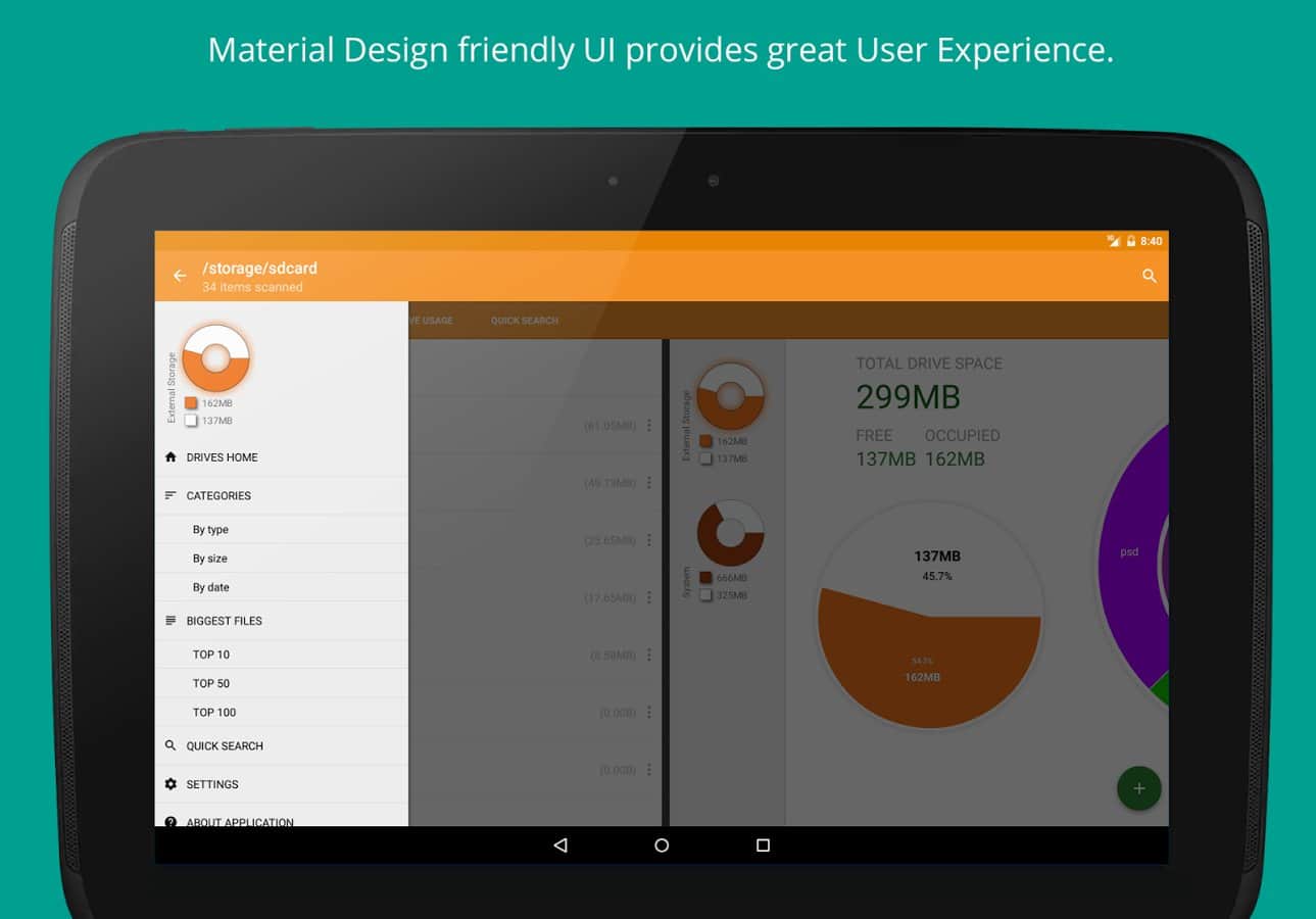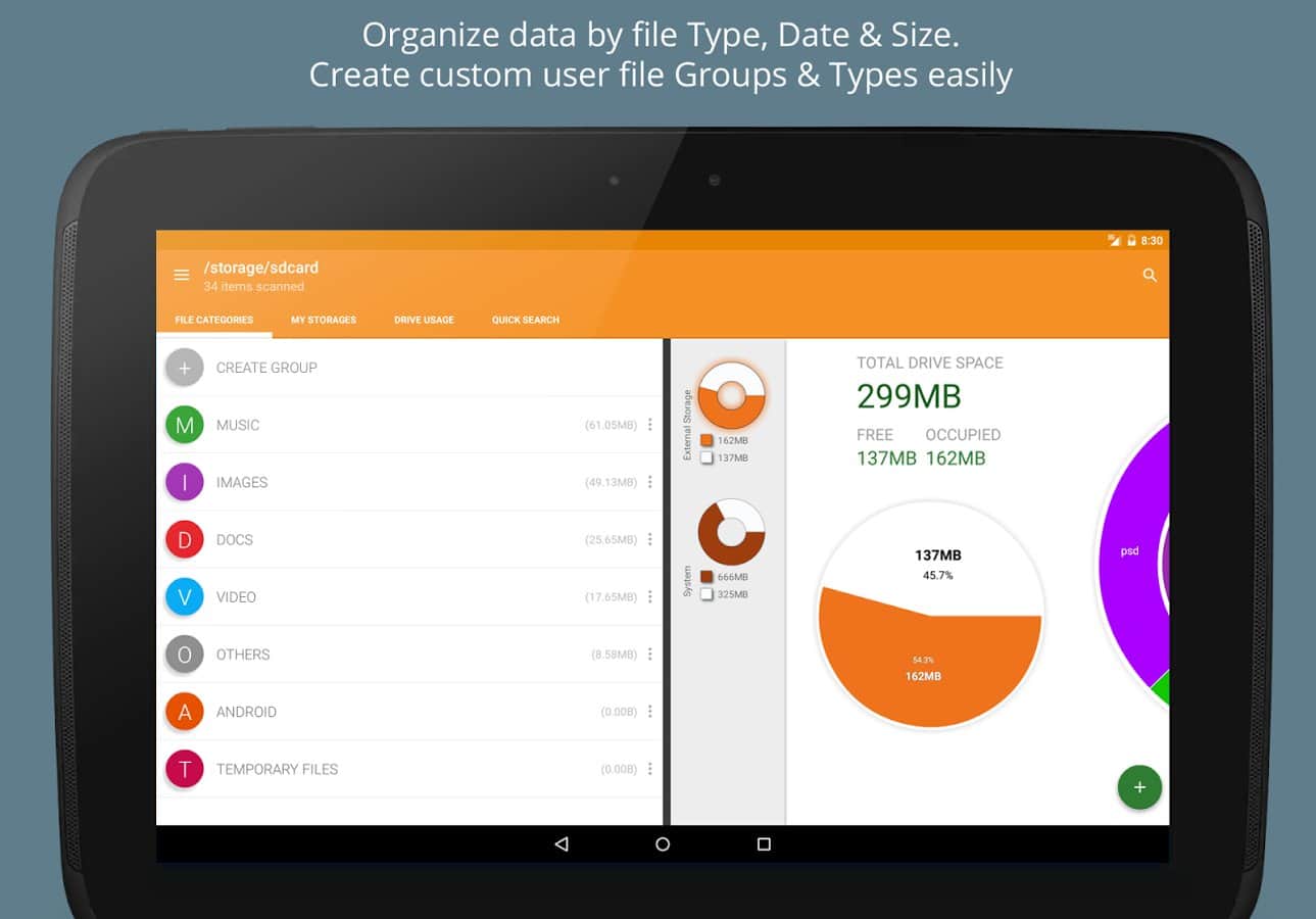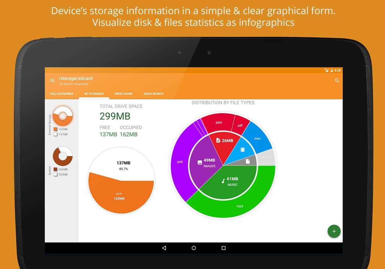 My Device Storage Analyzer - Эта программа на андроид позволит вам просматривать в подробностях память вашего устройства, а так же производить поиск файлов по названию и типу.