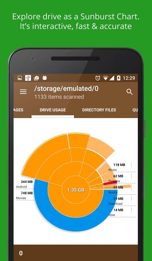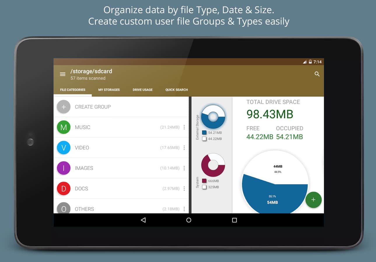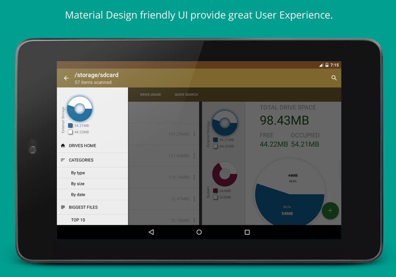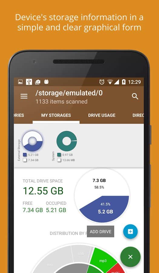 My Device Storage Analyzer - Эта программа на андроид позволит вам просматривать в подробностях память вашего устройства, а так же производить поиск файлов по названию и типу.