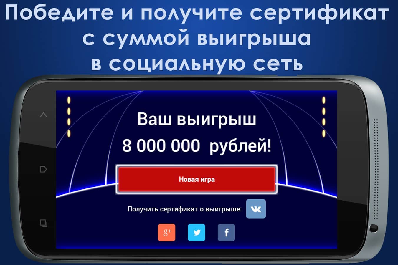 "Интересная викторина в которой можно выиграть 10 миллионов рублей."