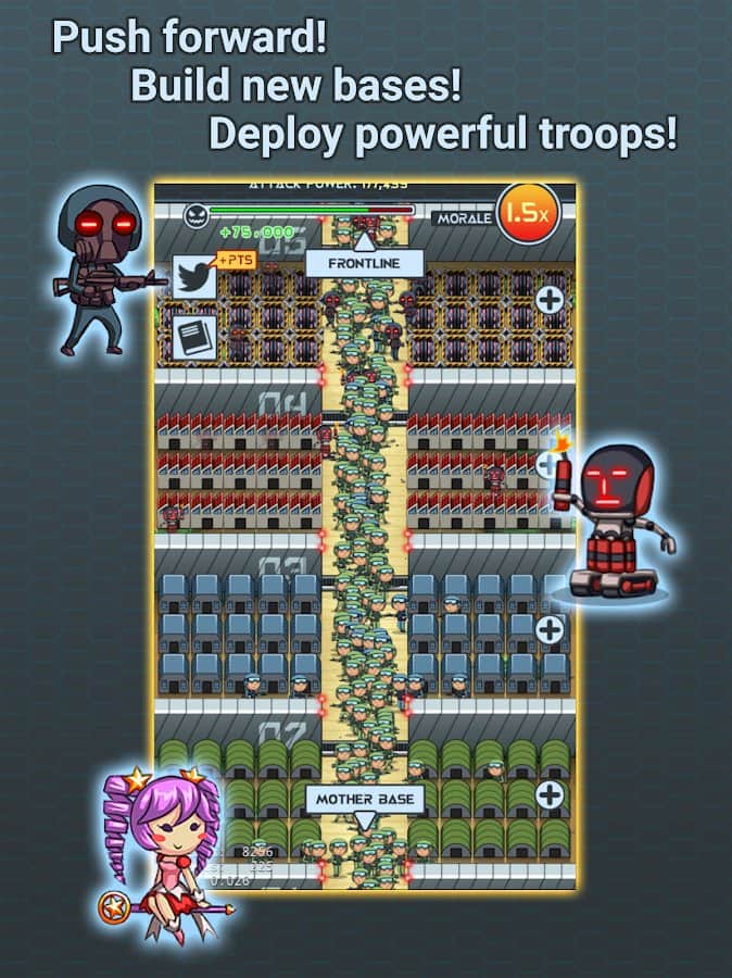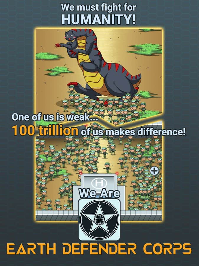 100T Earth Defender Corps – в этой эпичный игре вам предстоит спасти Землю от неминуемой гибели. Разработайте тактику и оружие и противостоите врагу, решившему заполучить лакомые территории. Некая форма жизни стала быстро и бесконтрольно мутировать, нападения на людей участились и надежда на спасение всего рода только на вас. Организуйте армию и отправляйте солдат в горячие точки, ослабьте противника и нанесите сокрушающий удар. Монстры быстро растут и распространяются, однако даже у них есть слабые места.