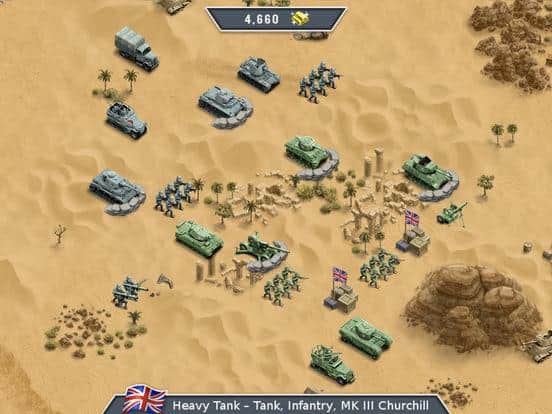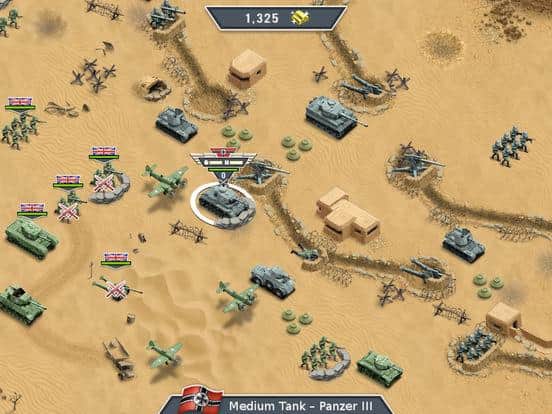 1943 Deadly Desert Premium – пошаговая стратегия для IOS, где вы примите участие в величайшей времен Второй мировой войны. В этой игре вы перенесетесь в 1943 год в пустыню, где гитлеровская коалиция решила совершить нападение на жизненно-важный цент по пополнению запасов, но британская армия не должна позволить им это сделать. Выбирайте за какую из двух сторон вы будете сражаться и начинайте битву. Разрабатывайте свою непобедимую стратегию и тактику, которая позволит вам одержать победу и победить злейшего врага. Захватывайте новые территории и покажите на деле свои лидерские качества и выдающееся мышление. Выполняйте поставленные миссии и применяйте для их выполнения мощное оружие.