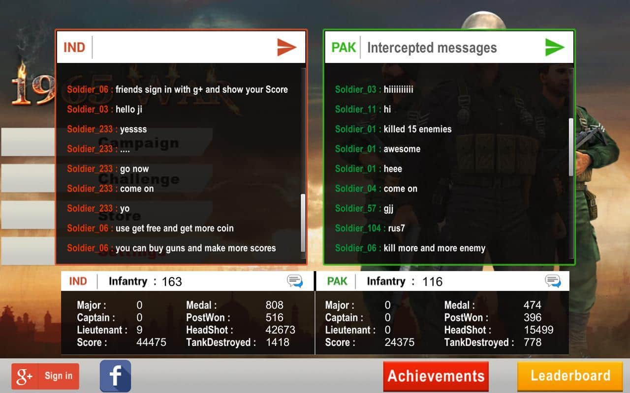 1965 WAR: Indo-Pak Clash Alert - шутер посвящённый войне в против Индии и Пакистана. Сюжет разворачивается в 1965 году. Играем солдатом отлично справляющимся с различным типом вооружения, автоматы, пистолеты а самое главное снайперские винтовки, всё это будет доступно игроку. Игра представляет собой шутер от третьего лица, в котором необходимо выжить любой ценой и доблестно сражаться против вражеских сил противника. В игре присутствуют несколько режимов игры включая самый интересный «кампания». Каждый день можно получить определённые виды наград, так что есть смысл заходить почаще в игру.