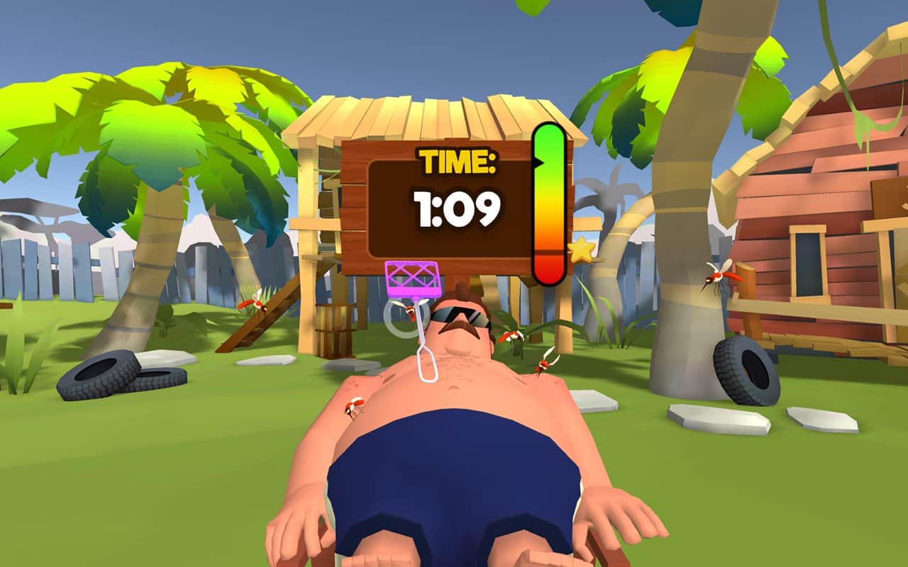 2 Star Resort – увлекательная игра на андроид, где вы погрузитесь в виртуальную реальность и будете с помощью мухобойки уничтожать насекомых. В этой игре вы перенесетесь на базу отдыха, где вами гости устали от вездесущих насекомых, которые мешают им отдыхать. Начальство базы наняло вас чтобы вы используя свою мухобойку уничтожали всех насекомых которые мешают гостям отдыхать. Перемещайтесь по огромному пространству базы и тщательно прицеливайтесь, чтобы уничтожить все насекомых, но будьте осторожны чтобы не убить пчел и бабочек. Играйте на протяжении 90 уровней и получайте по три звезды в каждом уровне.