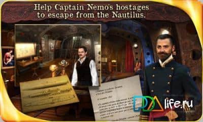 20,000 Leagues Under The Sea - Captain Nemo - Extended Edition - это увлекательное путешествие вместе с главными героями знаменитой книги Жюль Верна "20 000 лье под водой". Как вы уже догадались, играть придется за невольных пленников капитана Немо. Итак, хоть профессор Аронакс и его друзья восхищены красотами глубинного подводного мира, мысль о побеге не покидает их. Ваша задача - помочь профессору совершить побег. Ну а прежде придется поломать голову не об одну задачку, которую подкинет подводный мир и капитан Немо. Вас ждет более 30 красочных локаций!