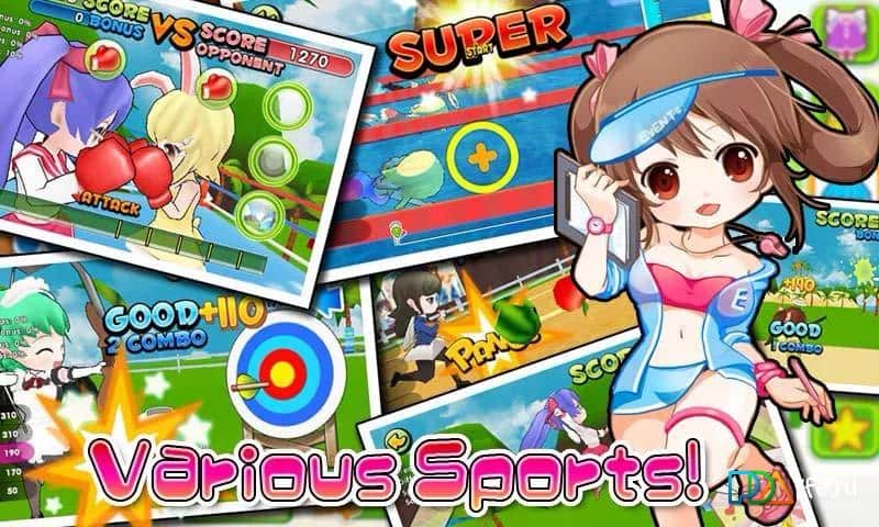 2014 Sports Girls: GO Sochi - игра на андроид, в которой вы будете участвовать в аркадных соревнованиях с милыми девушками. В вашем распоряжении несколько дисциплин: бег на 100 метров, плавание в бассейне, стрельба из лука, прыжок в длину и бокс. Одеваем своих героев в различную одежду и участвуем в соревнованиях. За полученные награды покупаем новые костюмы. В игре приятная графика, яркие уровни и увлекательный геймплей.