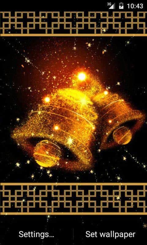 Christmas Bells Live Wallpaper – живые обои, выполненные в виде рождественских колокольчиков. Все в золотых тонах, мерцают звездочки, перемещаясь по экрану устройства. Есть возможность выбора необходимой скорости анимации.