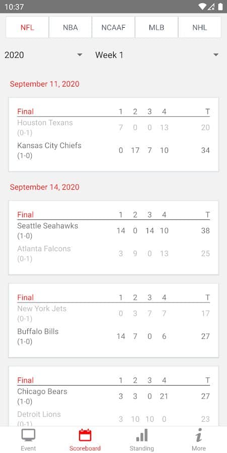 Это лучшее приложение для NFL - Football, NCAAF - College Football, NBA - Basketball, NHL - Hockey, MLB - Baseball с максимально возможными фишками для приятного просомтра. Особенности: