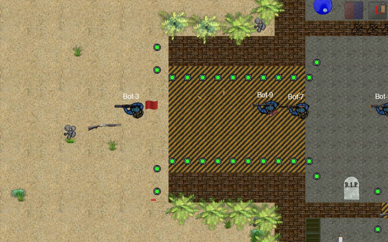 2D Strike – захватывающий шутер с видом сверху где вы будете играть против многочисленных игроков. Возьмите в руки мощное оружие такое как гранатомет, пулемет, огнемет или прочее оружие и перемещайтесь по картам выслеживая своих противников. В этой игре вы найдете девять режимов игры таких как: командная игра, защита базы, захват флага, атака жуков, зомби-заражение и другие. Стройте баррикады и расставляйте турели которые позволят вам защитить свою базу от врага. Одновременно в эту игру могут играть до 20 игроков или играйте против ботов.