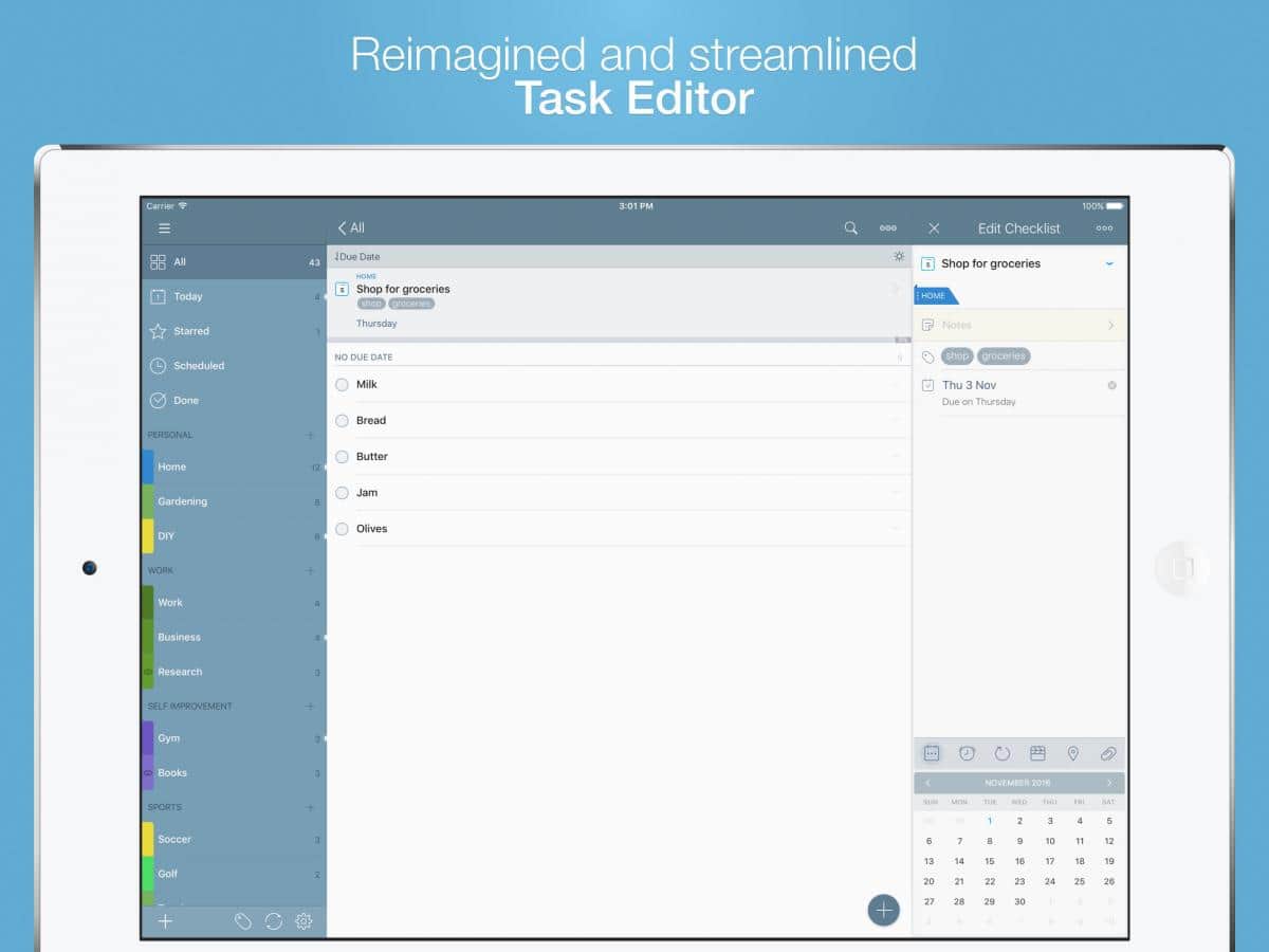 2Do: Tasks Done in Style – хороший менеджер задач, благодаря которому вы сможете делать заметки, составлять список задач и вести органайзер. А приятный и стильный дизайн приложения сделает вашу работу в нем максимально приятной.
