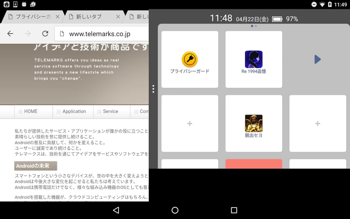 2ndHOME Launcher – приложение для андроид представляющее собой полезный инструмент для быстрого доступа к избранным приложениям, опциям системы из любой открытой программы, а так же с возможностью защиты личных данных и отключением лишних приложений. Лаунчер содержит два главных дисплея: один отвечает за размещение ярлыков на экране (до 11 штук) в виде плиток как на Windows Phone, а второй обеспечивает ускоренный доступ к целому перечню приложений, системным опциям устройства и средствам очистки памяти.