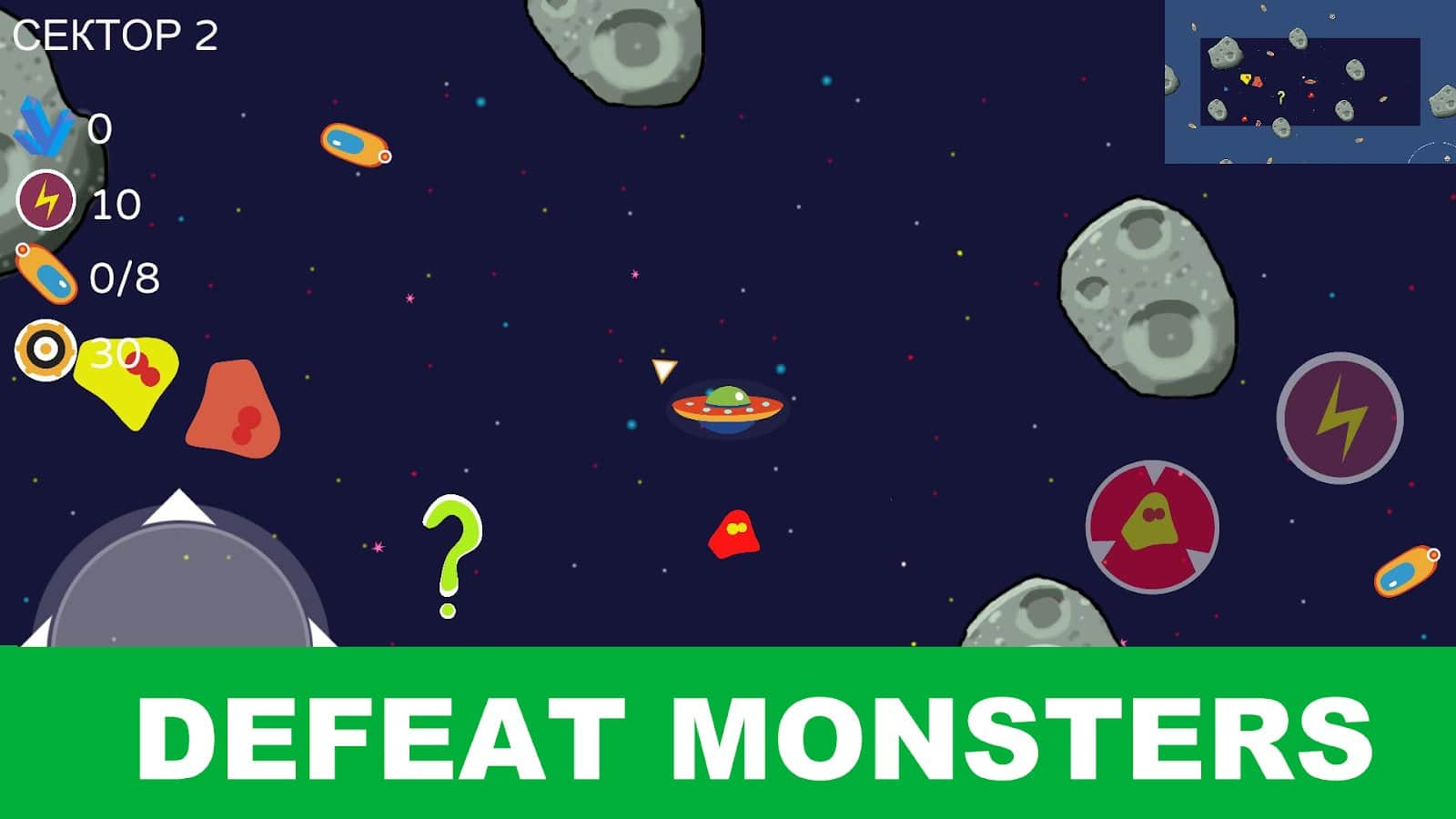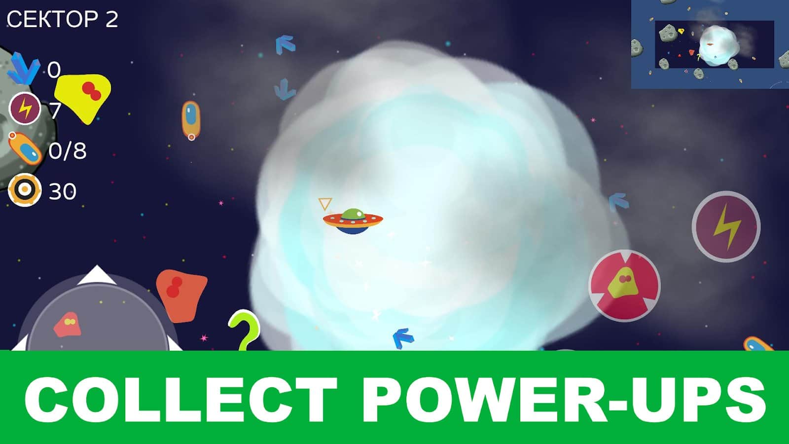 3-в-1 Flappy Space Arcade - Попробуйте не просто нажимать для продолжения полета на космическом корабле, но и для уничтожения препятствий, которые есть на вашем пути. Также, не допускайте гейзеров любого типа нагревать или охлаждать ваш транспорт, так как он быстро упадет от полученных повреждений. Наберите как можно больше спасательных капсул, какие остались после большого кораблекрушения, чтобы восстановиться и вернуться туда, откуда вы прилетели. В игре действуют физические возможности, поэтому учитывайте их при совершении определенных действий.