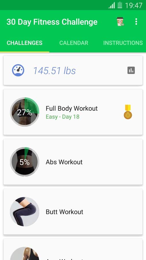 30 Day Fit Challenge Workout - Почему именно 30 дней? Все просто, авторы этого приложения, разработали его таким образом, что бы нормы занятий были поделены на 30 дней, в течении которых вы будете следовать строгому плану, а выполнив его до конца сбросите определенное количество веса. Если же этого вам не достаточно, вы сможете улучшить свои показатели и заниматься ещё 30 дней. С данным приложением все ваши тренировки индивидуальны, а так же в нем подробно описаны все упражнения, и даже в картинках показано что нужно делать.