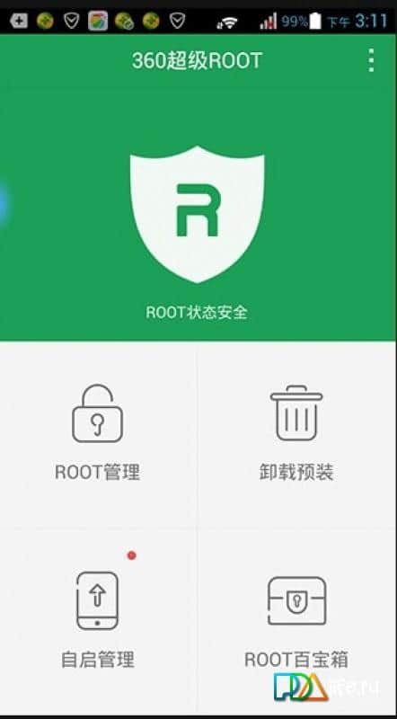 360 Root - Самый простой способ получить рут всего в один клик. Данное приложение работает не на всех смартфонах, однако поддерживает большинство из них. Оно максимально упрощено что бы вы могли зайти, и получить нужные вам права доступа. Поддерживается на устройствах Android v1.6-5.1.1. Для более поздних версий андроид, это приложение к сожалению пока не приспособлено.