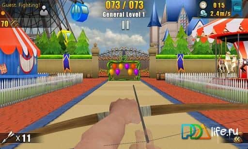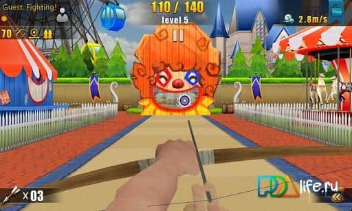 3D Archery2 - один из лучших симуляторов спортивной стрельбы из лука. Все что надо - это точно попадать в цель, потому что за меткость дают дополнительные стрелы. Если попадете в 10 - дадут 2 стрелы, а в 9 - одну. А вообще изначально у вас немного стрел, так что точное попадание даст возможность увеличить итоговое количество очков! Чем дальше вы будете продвигаться, тем сложнее станет попадать - усиливающийся и меняющий направление ветер, трясущиеся руки, а также движущиеся мишени - эти препятствия еще надо преодолеть! В целом игра увлекательная и затягивает!