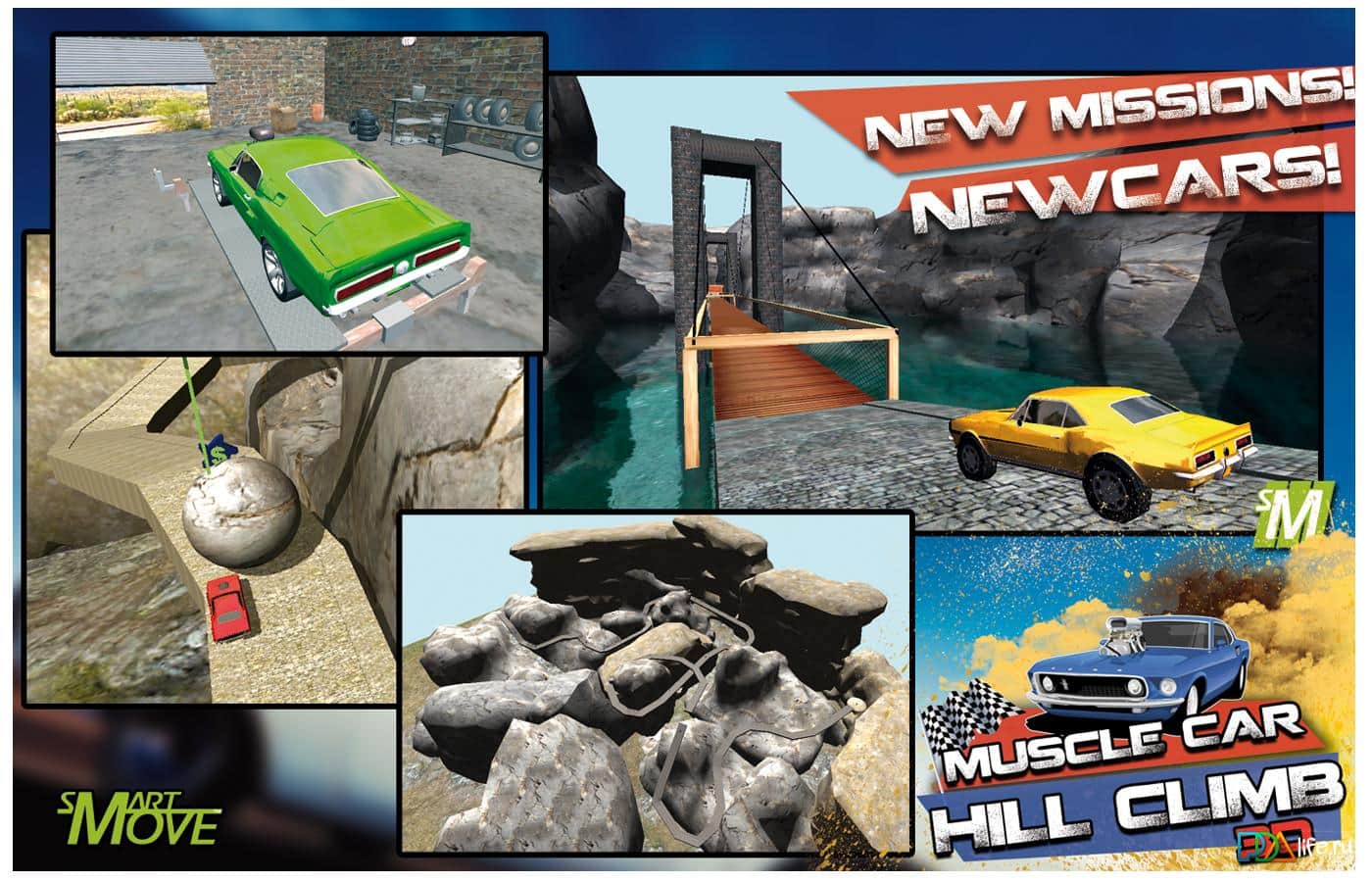 3d Hill Climb Muscle Cars 2014 - хорошие гонки на muscle карах, с неплохой графикой и физикой вождения на андроид. Принимайте участие в различных соревнованиях с большим количеством автомобилей и разнообразных красочных трасс. Игра может похвастаться 9 уникальными трассами, детализированными моделями машин и отличной производительностью на различных телефонах и планшетах.