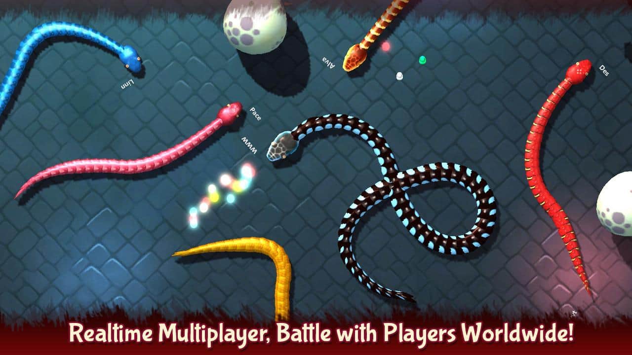 3D Snake . io – возьмите под свой контроль змею и пройдите бесконечные уровни игры. Бросайте вызов реальным игрокам со всего мира и перемещайтесь по огромной арене ведя вперед свою змею и поедая все на своем пути. В самые начала вы будете управлять небольшой змейкой, которая поедает овощи и фрукты расположенные на уровне. Ваша маленькая змейка будет обладать большей скоростью и маневренностью по сравнению с большими змейками, которые захотят вас съесть. Потребляйте как можно больше пищи и увеличивайтесь в размерах. Управляйте своей змейкой с помощью акселерометра и обходите все преграды на пути.