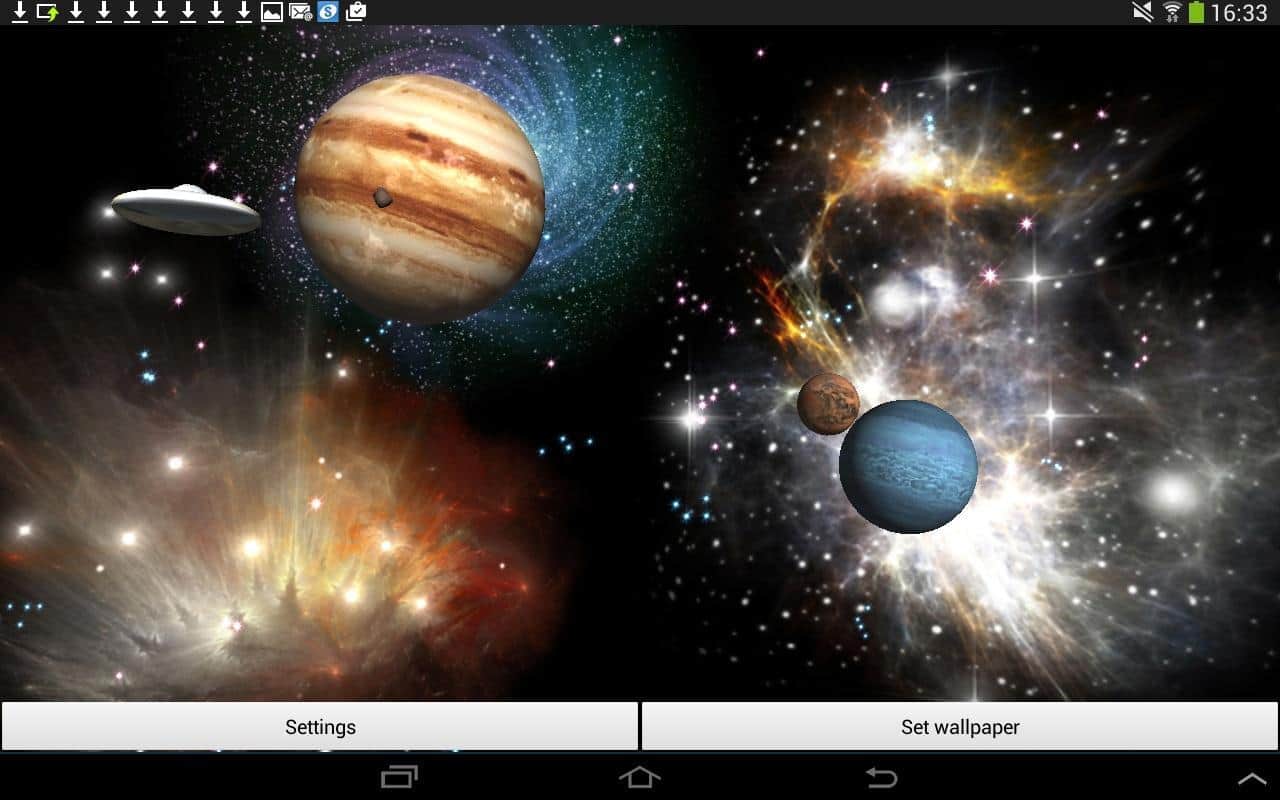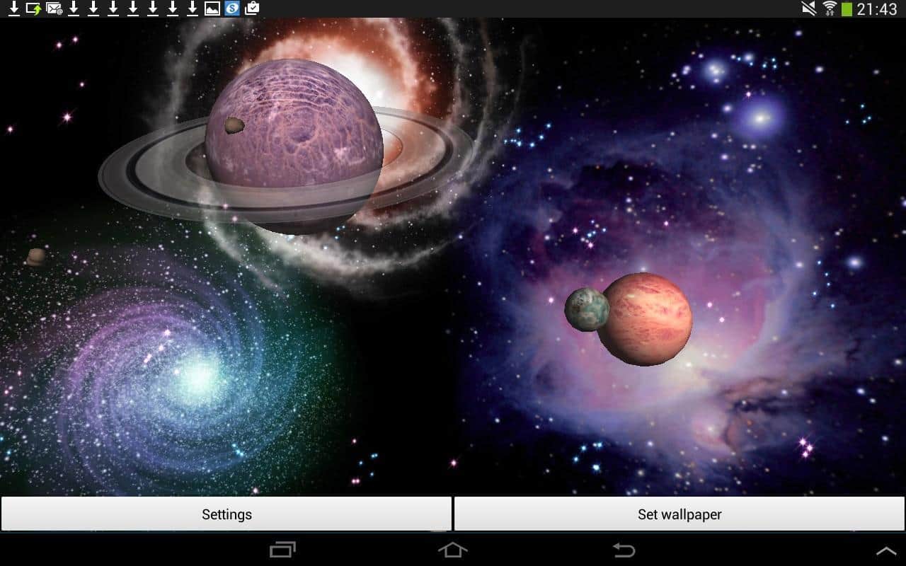 3D Space Live Wallpaper – завораживающий и манящий космос на живых обоях для андроид устройств от разработчика HelectronSoft. Выберите одну из предложенных вам планет и окрасьте ее в любой из четырех цветов, получив удивительную новую планету. Так же можно изменить цвет пространства и свечения, установить скорость вращения планеты , размер звезд и многое другое.
