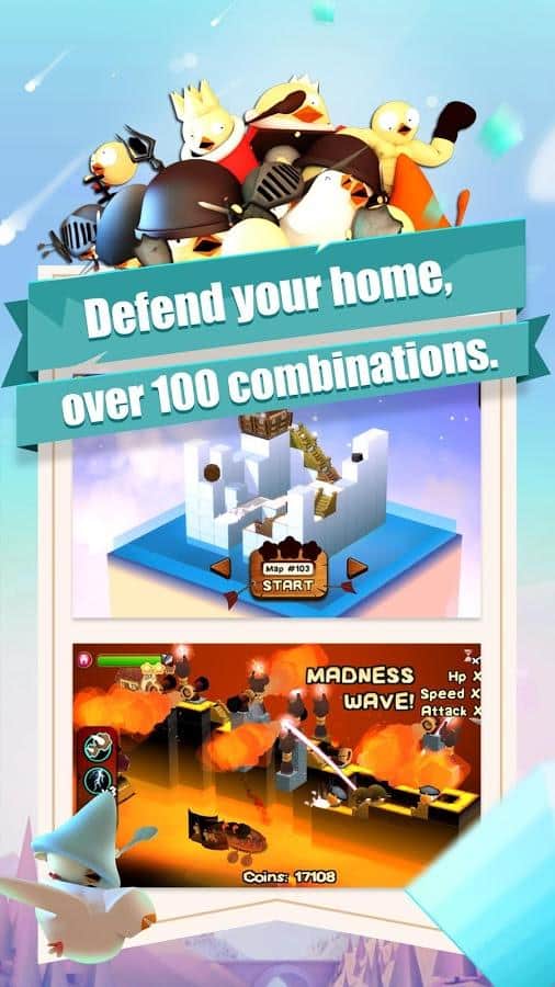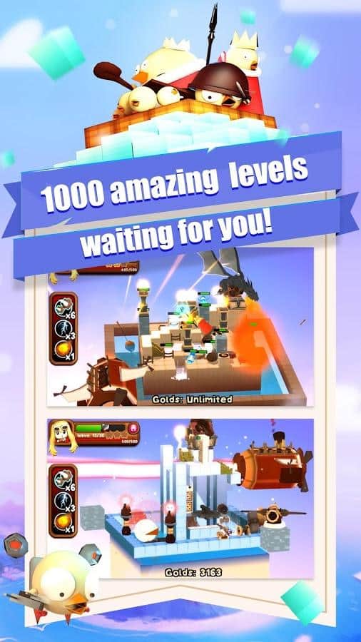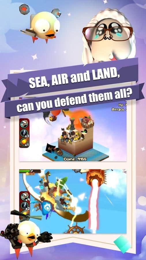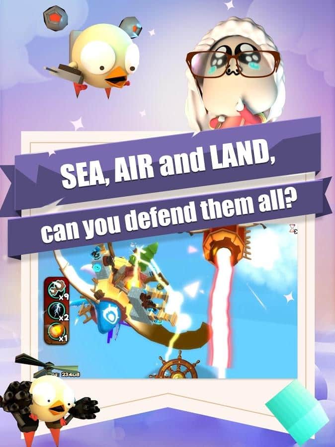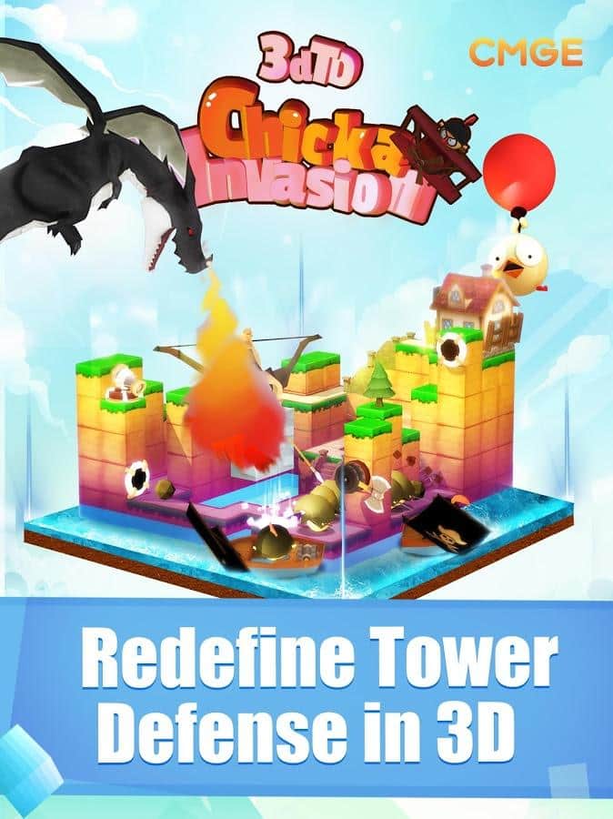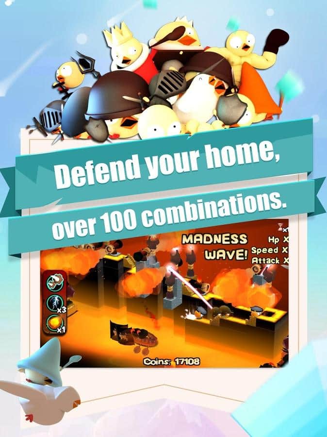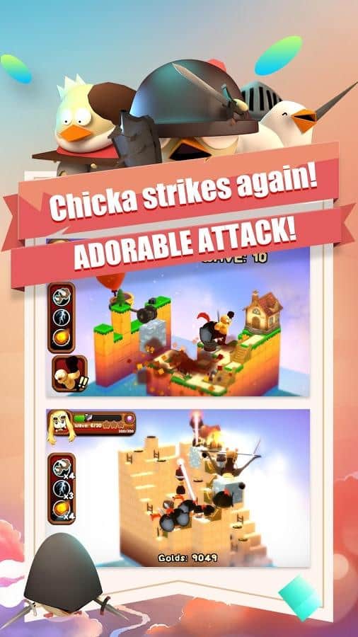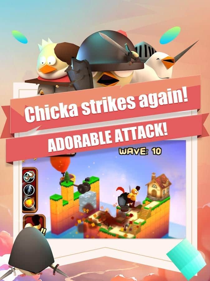 3DTD:Chicka Invasion – увлекательная игра на андроид, где вы будете защищать свой остров от армии цыплят. В этой игре на ваш остров напала целая армия цыплят и вашей задачей будет не дать им пробраться дальше. Размещайте на пути врагов многочисленные башни и ловушки и уничтожайте цыплят. Вашим врагам нипочем крутые рельефы и склоны острова они будут наступать со всех сторон. Расставляйте по всему острову качающиеся маятники, пушки, арбалеты, копья и другое оружие и защитите свой остров от врагов. Зарабатывайте монетки за каждого уничтоженного врага и приобретайте новое оружие и башни.