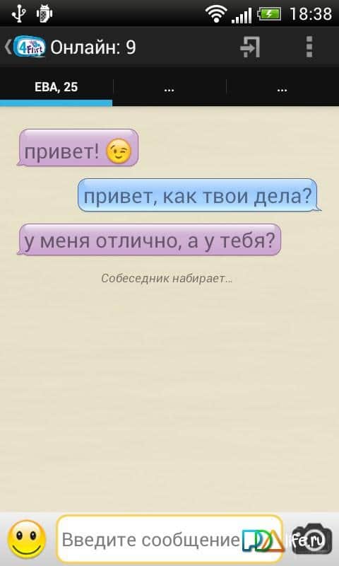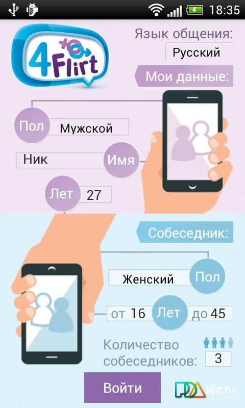 4 Flirt - анонимный флирт чат – приложение для тех, кто ищет новых случайных знакомств. Если вам скучно, не с кем поговорить, нужен совет не заинтересованных лиц или просто ни к чему не обязывающее общение приложение - 4 Flirt обеспечит вам все это. Случайные знакомства до четырех собеседников (каждый в отдельном кабинете), переписку и фотографии не возможно сохранить, так же стоит сказать, что и 4Flirt не хранит вашу переписку. Приятного общения.