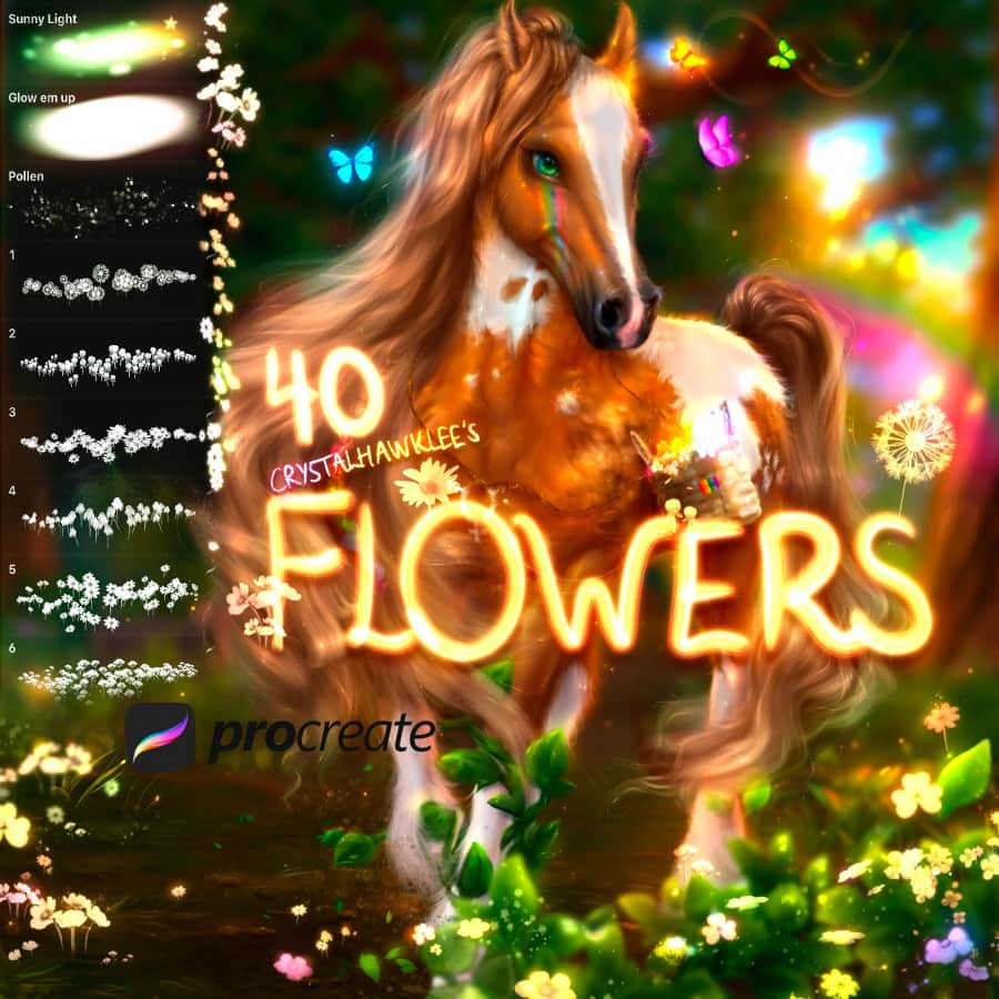 40 FREE Flower Brushes for Procreate - В процессе рисования можно забыть о том, что реально, и вспомнить о том, каким магическим мы можем вообразить новый мир. Станьте тем самым художником, который придумает идеальные образы для воплощения магии, и при этом использует соответствующие кисти для отображения этого на рисунке. В этом наборе вы сможете увидеть и использовать не только особые блики света, но и различные виды цветов, пыли и прочего. Добавьте собственным работам шарма, загадочности и красочности, настроив подходящие пропорции.