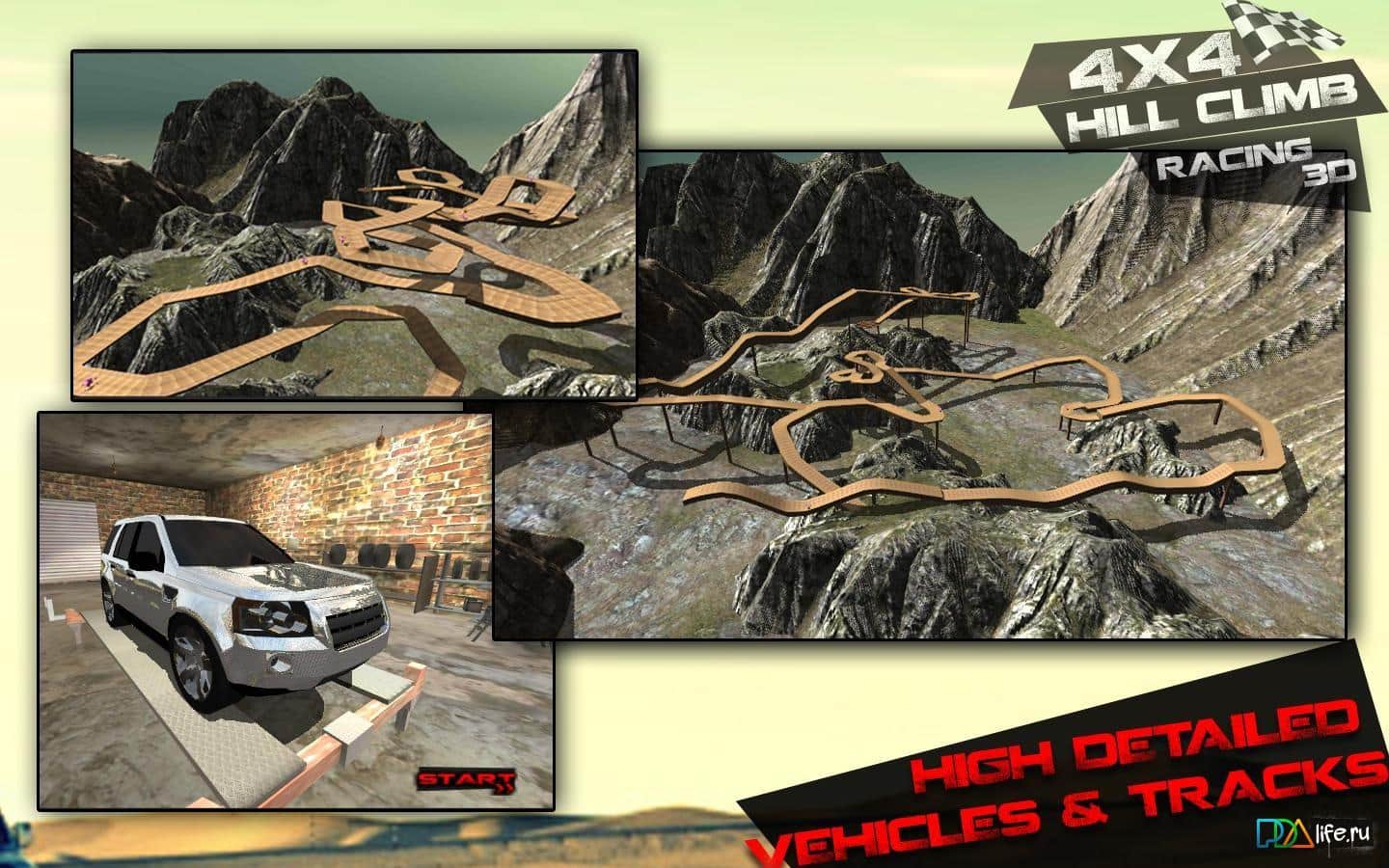 4x4 Hill Climb Racing 3d - гонки на андроид, на больших внедорожниках. В вашем распоряжении внедорожник, на котором вам предстоит проехать большое количество сложнейших трасс. Аккуратно проезжайте все повороты, доезжайте до финиша, зарабатывайте очки, и трате их на различные игровые бонусы. В игре отличная физическая модель движений машины, 9 красочных трасс и качественно пририсованные внедорожники.