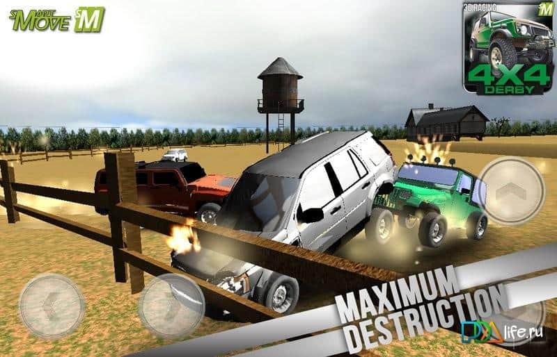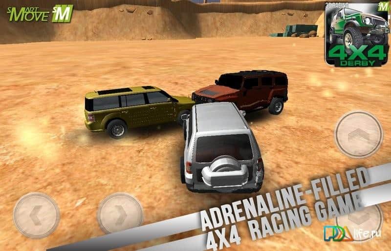 4x4 Real Derby Racing 3d 2014 - Добро пожаловать в мир дерби на андроид. Вас ждут интересные заезды на джипах с сумасшедшими столкновениями. Так же на уровнях расставлены трамплины, с помощью которых вы сможете выполнять трюки. В игре неплохо реализована физика автомобилей – все движения, удары и трюки выглядят весьма неплохо. Графика в игре не блещет, но в таких играх она особо не важна. Здесь главное геймплей.