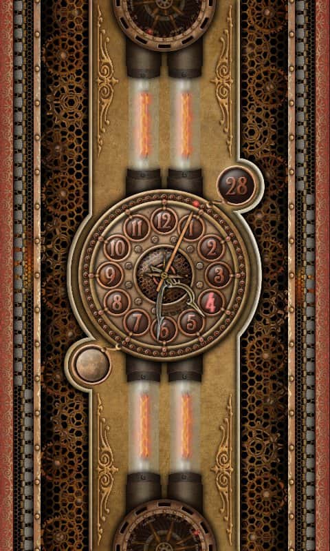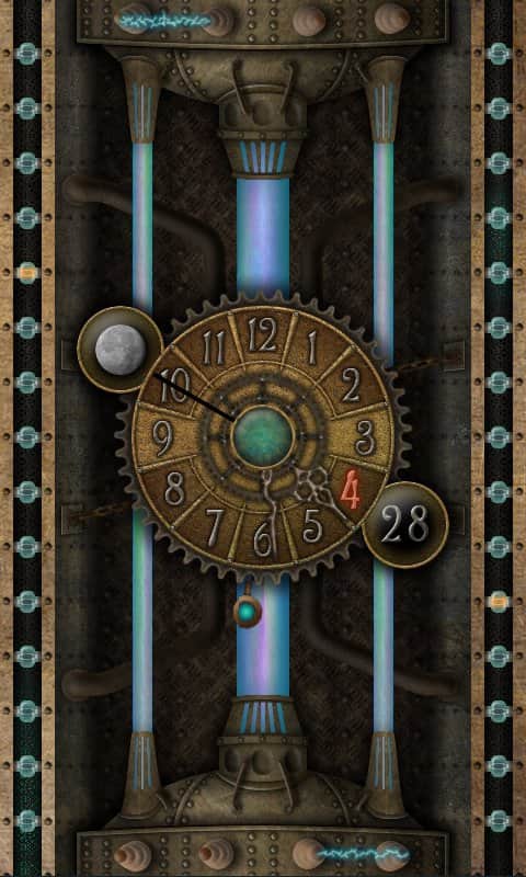 5 Clocks live wallpaper – первоклассные живые обои для андроид с часами, которые имеют 5 различных тем: шестерни, насосы, плазма и другие. Все часы имеют фазы луны и показатель дня месяца.