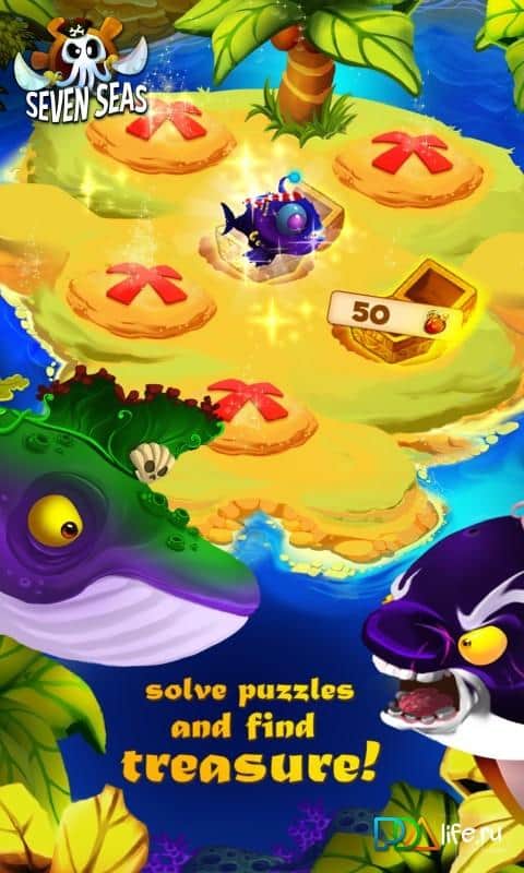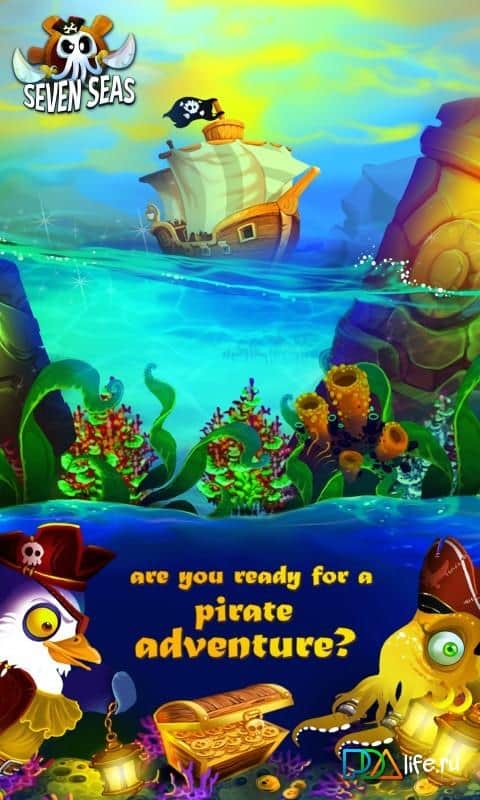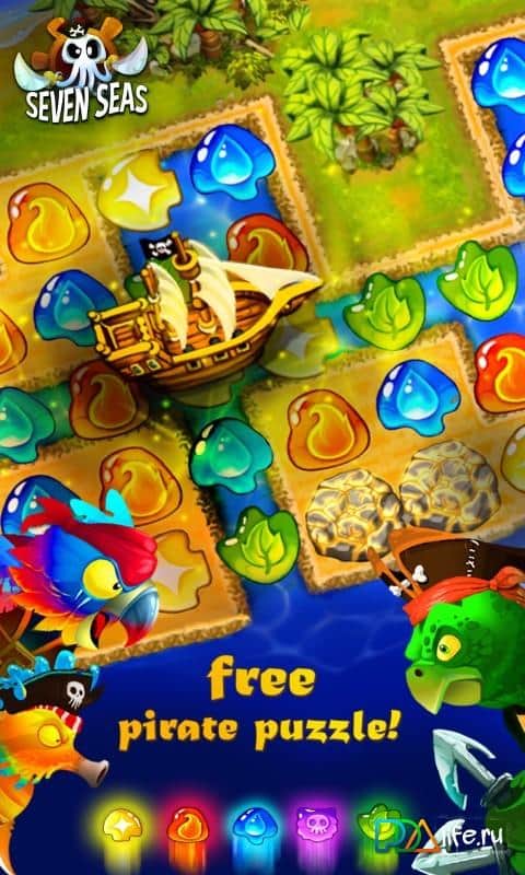 Наверно сложно будет найти владельца мобильного устройства который бы хотя бы раз не играл в игры от Французской студии BulkyPix. В арсенале данного разработчика присутствуют и ранеры, и платформеры, и Tower Defence, и много чего еще, однако все их проекты объединяет одно - аркадный геймплей. 7 Seas - очередное творение BulkyPix, на этот раз разработчики решили обратить свое внимание на популярный жанр три в ряд, но при этом заметно разнообразили игровой процесс. Был реализован сюжет и приключенческая атмосфера, но отдельно стоит остановиться на геймплее. В 7 Seas нет привычного статичного поля, игра как бы перетекает по динамично локации, что выглядит очень оригинально. Добавьте ко всему этому массу призов и бонусов, достижений и конечно же прекрасную графику и вы получите нечто совершенно новое.