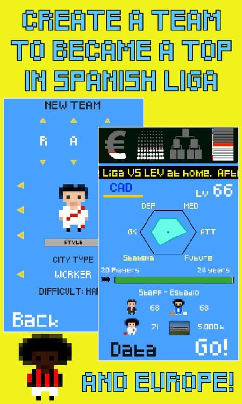 Спортивная игра «8-bits Football Mini Manager» по созданию собственной футбольной команды ждёт вас. Вам предстоит проявить не только креатив при оформлении каждого из игроков, но и с умом подобрать их личностные качества для успешной игры в команде и выполнения своей роли на поле! Доступно несколько режимов ведения игры, один из которых, самый тяжёлый, действительно заставит вас попотеть при обдумывании ходов. В целом, игра исполнена в пиксельном, восьмибитном формате, знакомом каждому, что делает игру атмосферной и очень интересной!