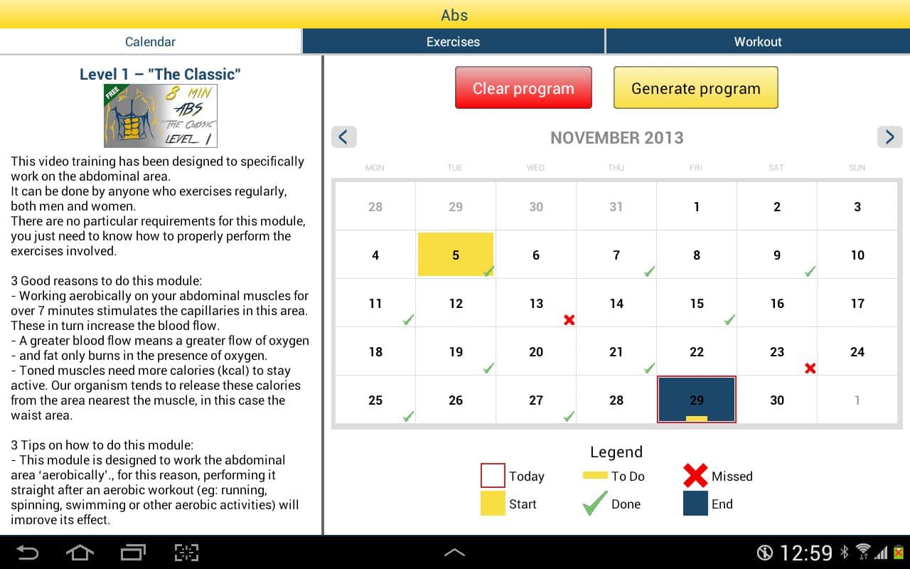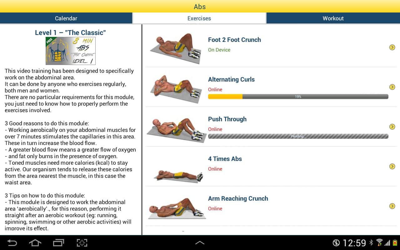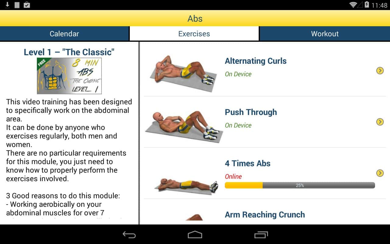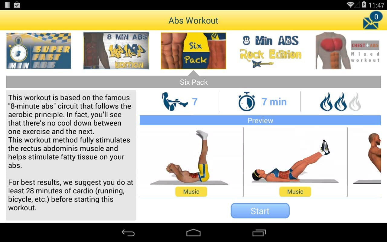 8 Minutes Abs Workout - Хотите стройный животик и накачанный пресс, всего за 8 минут в день? Тогда это очень просто! С этим приложением вам не нужно тратить часы в спортзалах, нужно заниматься дома, и всего 8 минут в день. Данное приложение создаст для вас индивидуальный график тренировок, и усложняя задачу каждый день, вы сможете достичь феноменальных результатов уже через пару недель. Так же, здесь есть инструкция ко всем упражнениям, так что вы сможете посмотреть как правильно делать то или иное упражнение.