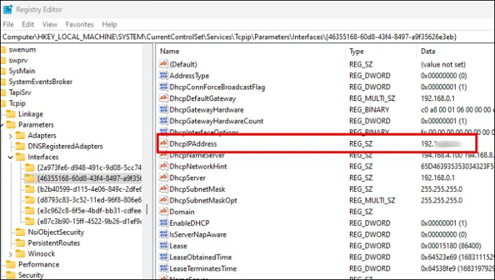 HKEY_LOCAL_MACHINE\SYSTEM\CurrentControlSet\services\Tcpip\Parameters\Interfaces