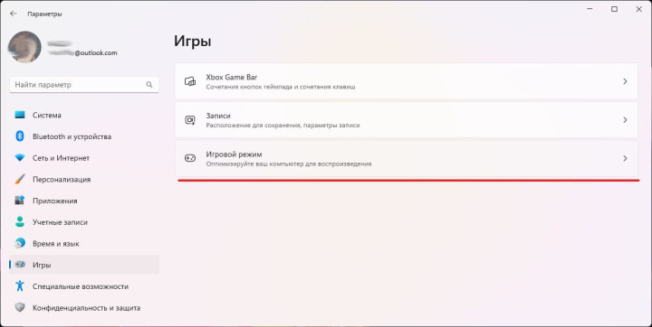 Чтобы включить этот режим, переходим по пути Пуск — Параметры — Игры — Режим игры. Здесь вы найдете тумблер, который нужно будет активировать.