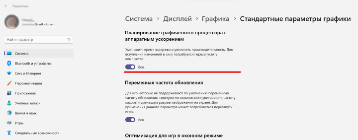Эта опция с мудреным названием позволяет перераспределять нагрузку между центральным процессором и графическим процессором. Такой подход оправдан, если вы используете мощную видеокарту и средний или уже устаревший процессор. Ищите опцию по пути Пуск — Параметры — Система — Дисплей — Графика — Стандартные параметры графики. Если описываемый параметр отсутствует в настройках, ваше оборудование его не поддерживает.