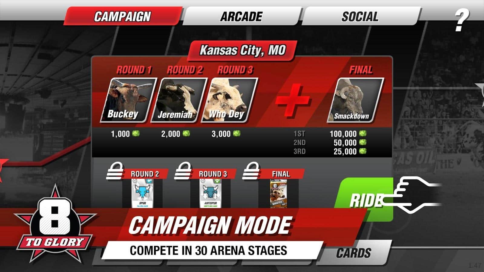 Родео - традиционный вид спорта в Северной Америки, по предположениям первые официальные соревнования прошли еще 1883 году. Родео включает в себя несколько видов соревнований, но самый популярный и зрелищный из них так и называется родео, в котором спортсмен не только продержаться на быке или лошади более 8 секунд, но и показать потенциал животного. 8 to Glory - Bull Riding - симулятор родео, в котором вы сможете попробовать свои силы в этом нелегком занятии. Создатели игры потратили немало сил для придания 8 to Glory - Bull Riding реализма, создание реалистичной физической модели, трехмерное моделирование быков, более 30 реально существующих спортсменов. Так же в игре есть несколько режимов, в том числе полноценная карьера и аркада в которой вы сможете потренироваться перед настоящими соревнованиями.