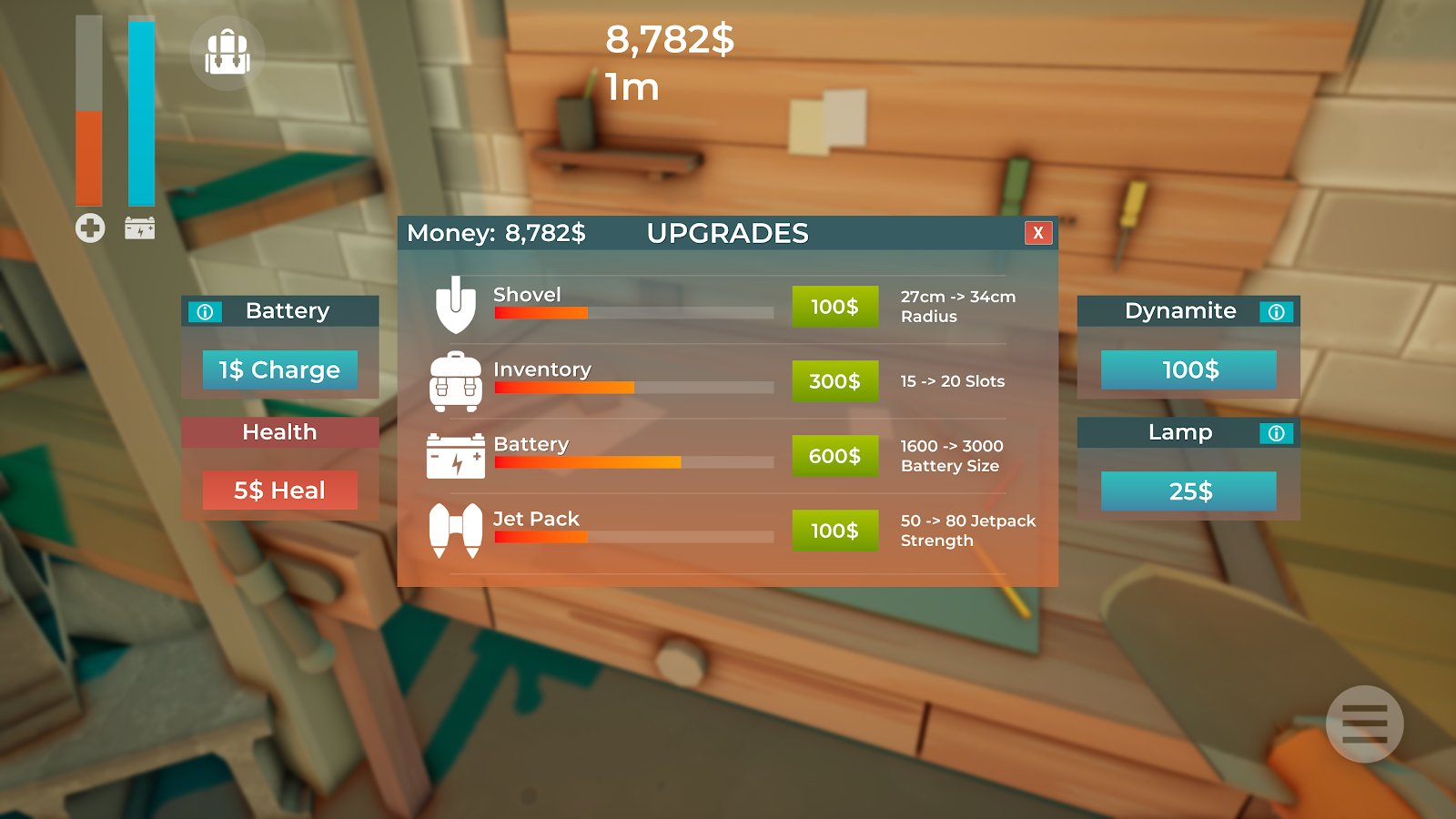 Практически год не писала отзывы, надо исправлять. Суть игры можно понять по названию. По сути это таймкиллер, вот только игра вызывает много вопросов, даже если учитывать, что это порт с пк. Вам нужно копать, улучшаться, копать и ещё раз копать. Однако, есть некоторые нюансы, которые не дадут вам наслаждаться игровым процессом. В игре есть три параметра: здоровье, вместимость и топливо у ранца (который нужен, чтобы на поверхность было проще выбираться)
