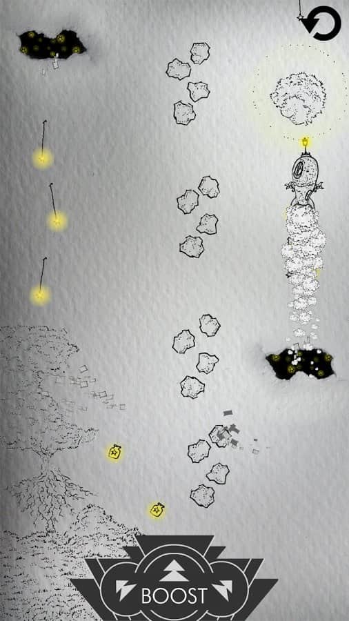 A Skyrocket Story - одна из тех игр что гармонично сочетают простой, но при этом увлекательный геймплей и оригинальное графическое исполнение. Игровой процесс A Skyrocket Story достаточно прост, управляя при помощи кнопок полетом ракеты ваша задача собрать как можно больше элементов расположенных на уровне. Подобных игр на мобильных устройствах существует огромное множество, но ни одна из них не сможет посоперничать с A Skyrocket Story в плане графики. Художником проекта выступил John William Evelyn известный своим неповторимым стилем. В итоге данная игра получила уникальный вид, вид бумажного мира с нарисованными карандашом объектами, а дополняет общую картину красочные вставки. Стоит отметить и наличие детальной сюжетной линии, познакомиться с которой вы сможете в процессе прохождения игры.