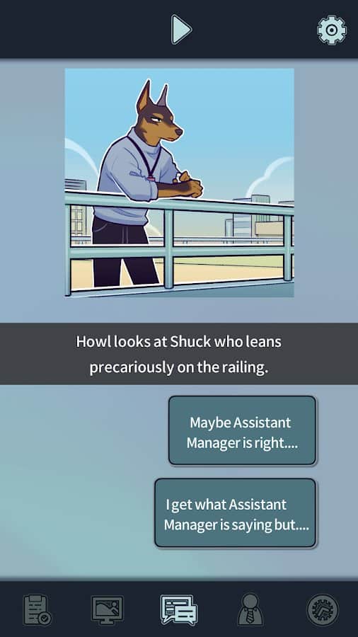 A Story of A Company! - Расслабьтесь, переместившись в фантастический офис, в каком работают не только обычные люди, но и гибриды животных с людьми. Судьба каждого персонажа меняется в ходе прохождения сюжета визуальной новеллы, а именно когда вы делаете любой выбор в истории. Наблюдайте за интересными событиями в жизни гибридов, получайте различные достижения, читайте каждый разговор между персонажами и наслаждайтесь необычными иллюстрациями, которые максимально передают атмосферу завораживающего сюжета. Добро пожаловать в необычный мир!