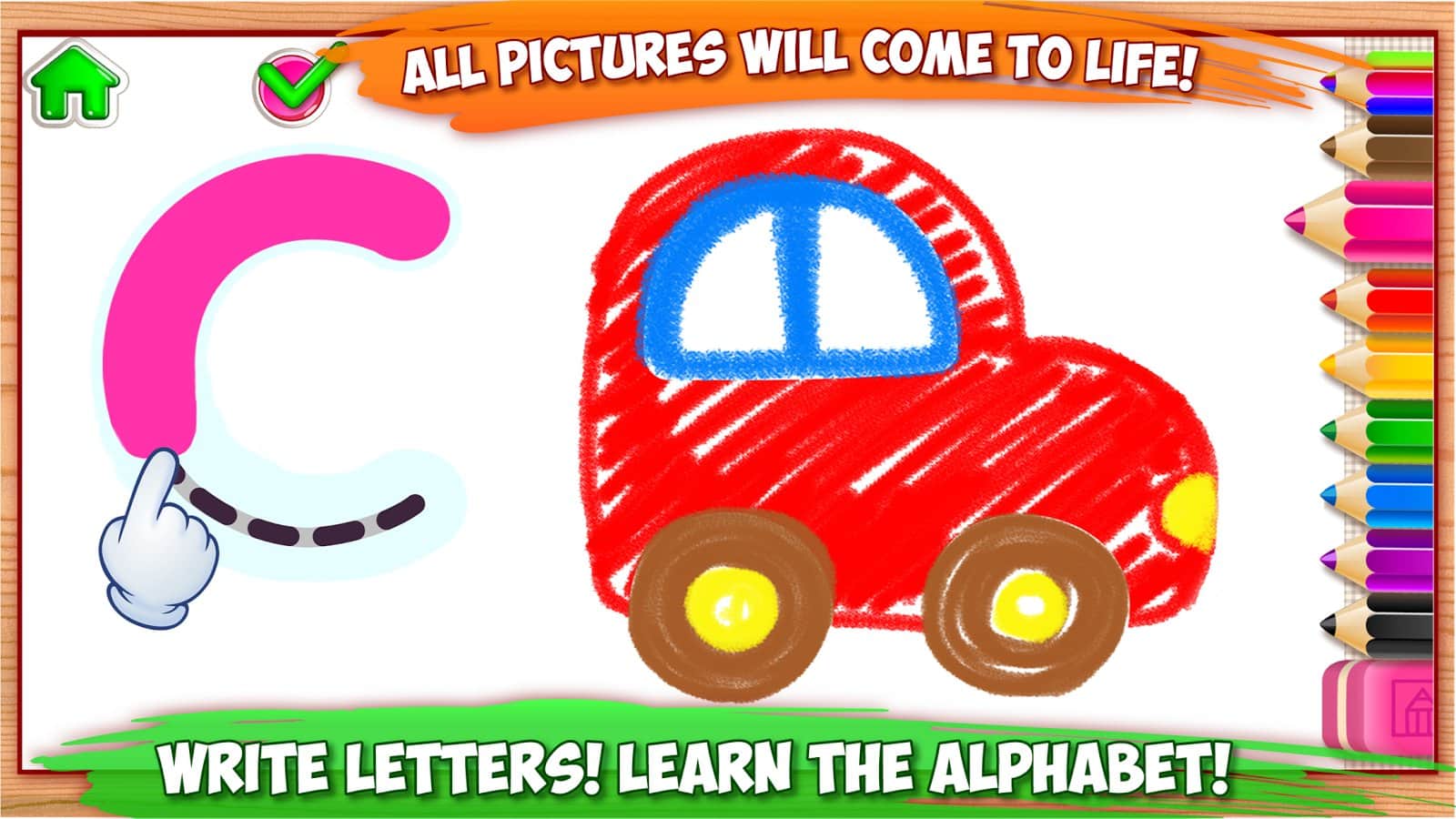 ABC DRAW Kids Drawing! Alphabet Games Preschool – развивающая игра для детей дошкольного возраста, где ваш ребенок будет изучать буквы. В этой игре ваш малыш шаг за шагом будет рисовать по образцу различных животных, следуя голосу диктора. Следуйте подсказкам и запоминайте буквы расположенные на уровне. Также в игре ваш ребенок познакомится с многочисленными и разнообразными животными, которые будут сопровождать вас на протяжении всей игры. Играйте в эту игру с ребенком и тренируйте его мелкую моторику, изучайте буквы и осваивайте навыки письма.