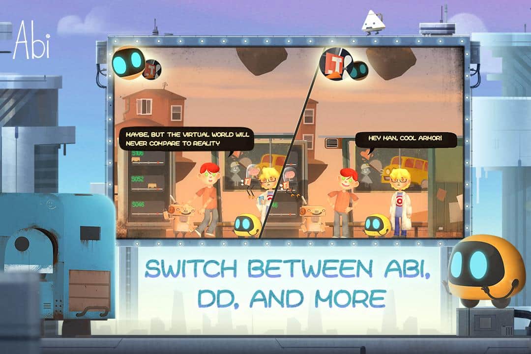 Abi: A Robot's Tale – игра на андроид, которая перенесет вас в недалекое будущее, где большими темпами развиваются новые технологии, которые привели к неминуемой катастрофе. Сюжет игры накинется с того что устаревший бытовой робот Abi находит промышленного робота DD и они вместе покидают запертый склад. Выбравшись на свободу, они обнаруживают что все люди на планете исчезли. Исследуйте окружающий вас мир и разгадывайте тайны и загадки для того чтобы докопаться до истины. Ваши герои будут обладать уникальными умениями, которые помогут им преодолевать все препятствия на пути и пройти все испытания. Проходите захватывающие мини игры и наслаждайтесь отличной рисованной графикой и неповторимым пост апокалиптическим миром.