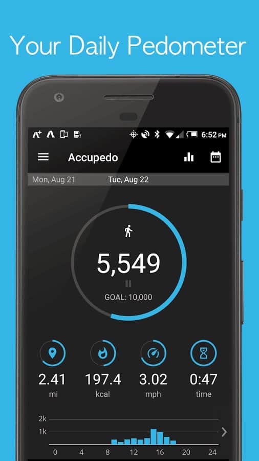 Accupedo-Pro Pedometer - Все слышали выражение о том что движение это жизнь, так вот автор данного приложения полностью с этим согласен, и более того он смог подсчитать как же много движется. Это приложение более функционально чем кажется из названия, оно не только посчитает сколько шагов вы сделали за день, месяц или даже год, оно ещё и составит для вас удобную таблицу. Вы сможете посмотреть сколько приблизительно сожгли калорий, какая дистанция была пройдена и множество другой информации. Все это будет удобно подано в виде виджета, или же графиков.