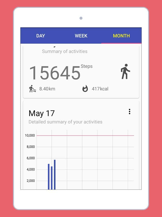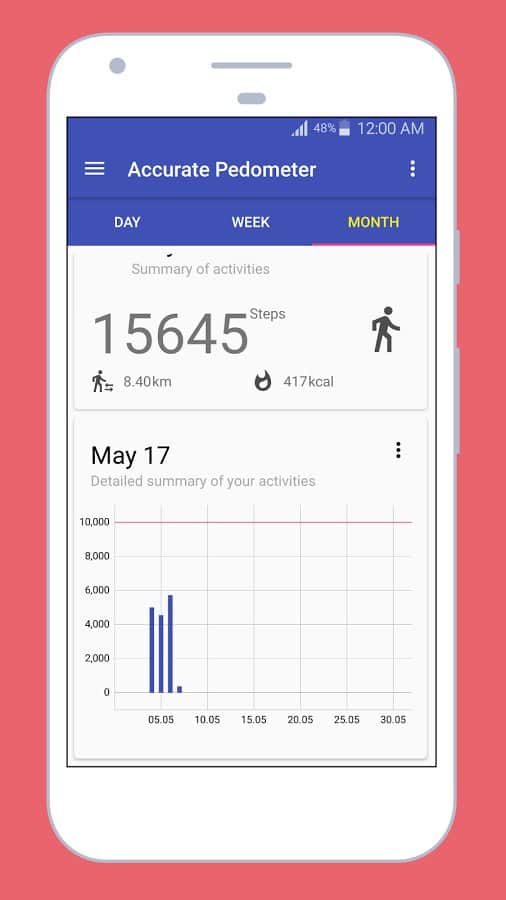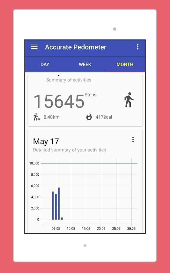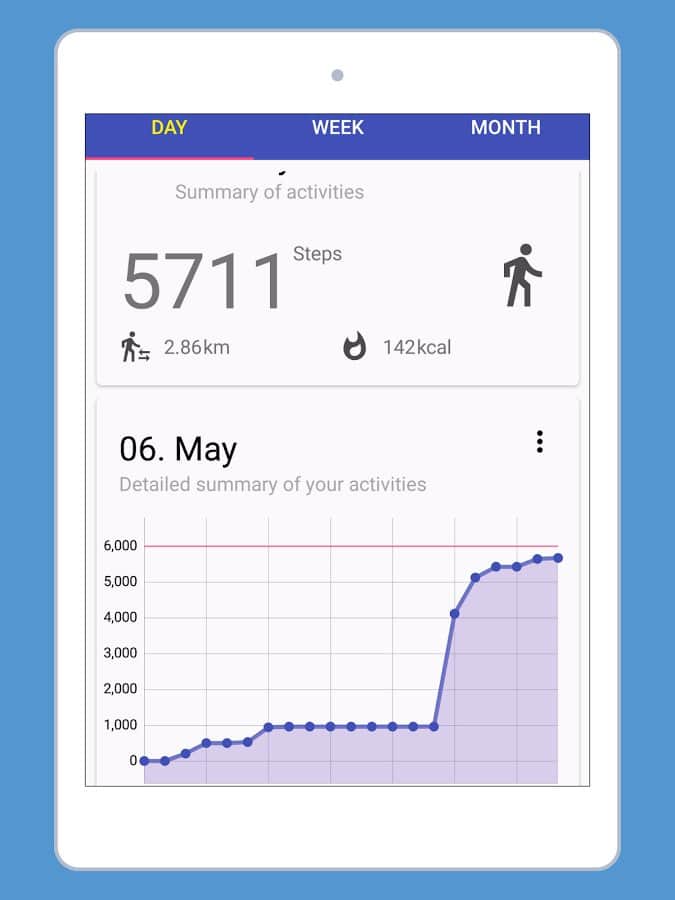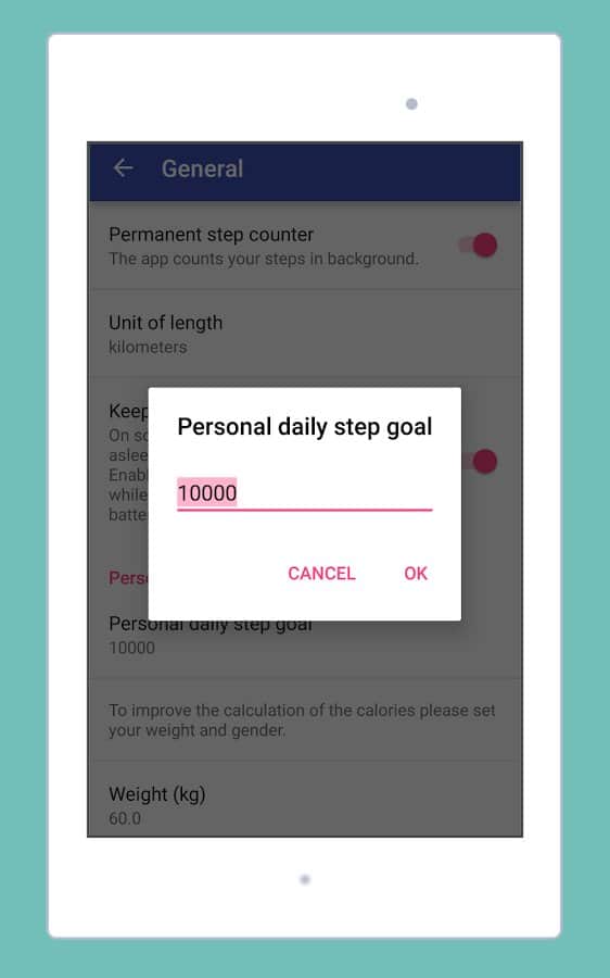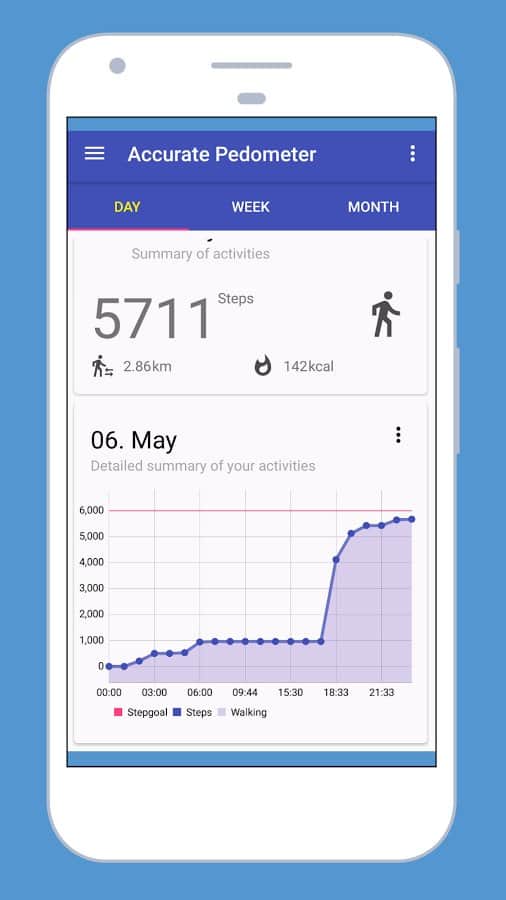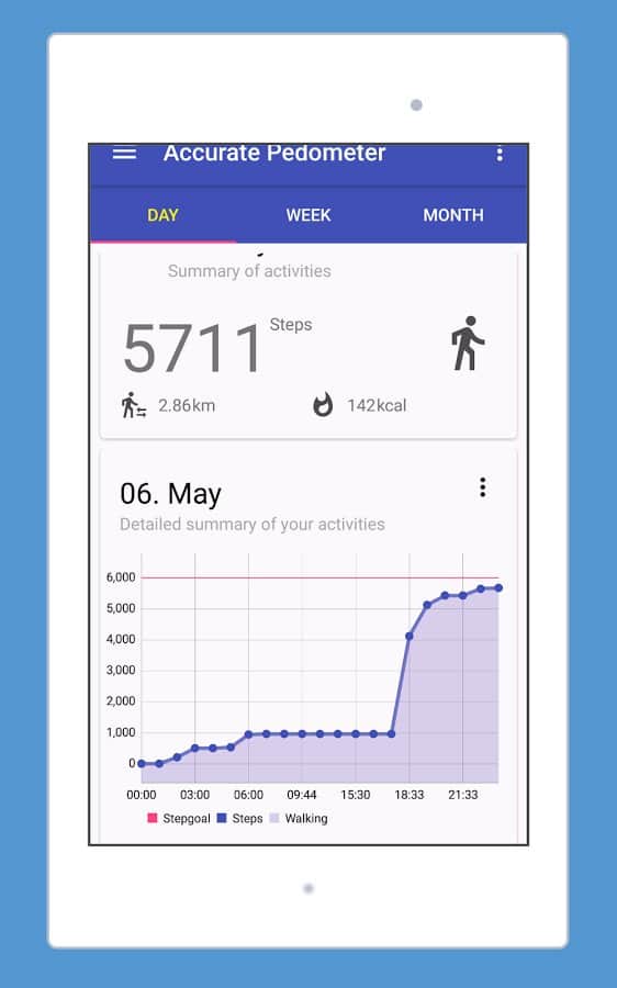 Если вы хотите проводить время с пользой для своего здоровья, то шагомер Step Counter будет вам полезен. Занимайтесь спортом ежедневно и добивайтесь успеха. Особенности: Точный автоподсчет шагов во время прогулки или пробежки Занимает мало места в памяти устройства и практически не расходует батарею Показывает скорость, время и расстояние, а также количество сжигаемых калорий при двигательной активности Лёгкие настройки и приятный интерфейс Отслеживание прогресса за счёт сохранения истории шагов Формирование графика и ежедневных задач Автономная работа приложения в фоновом режиме.