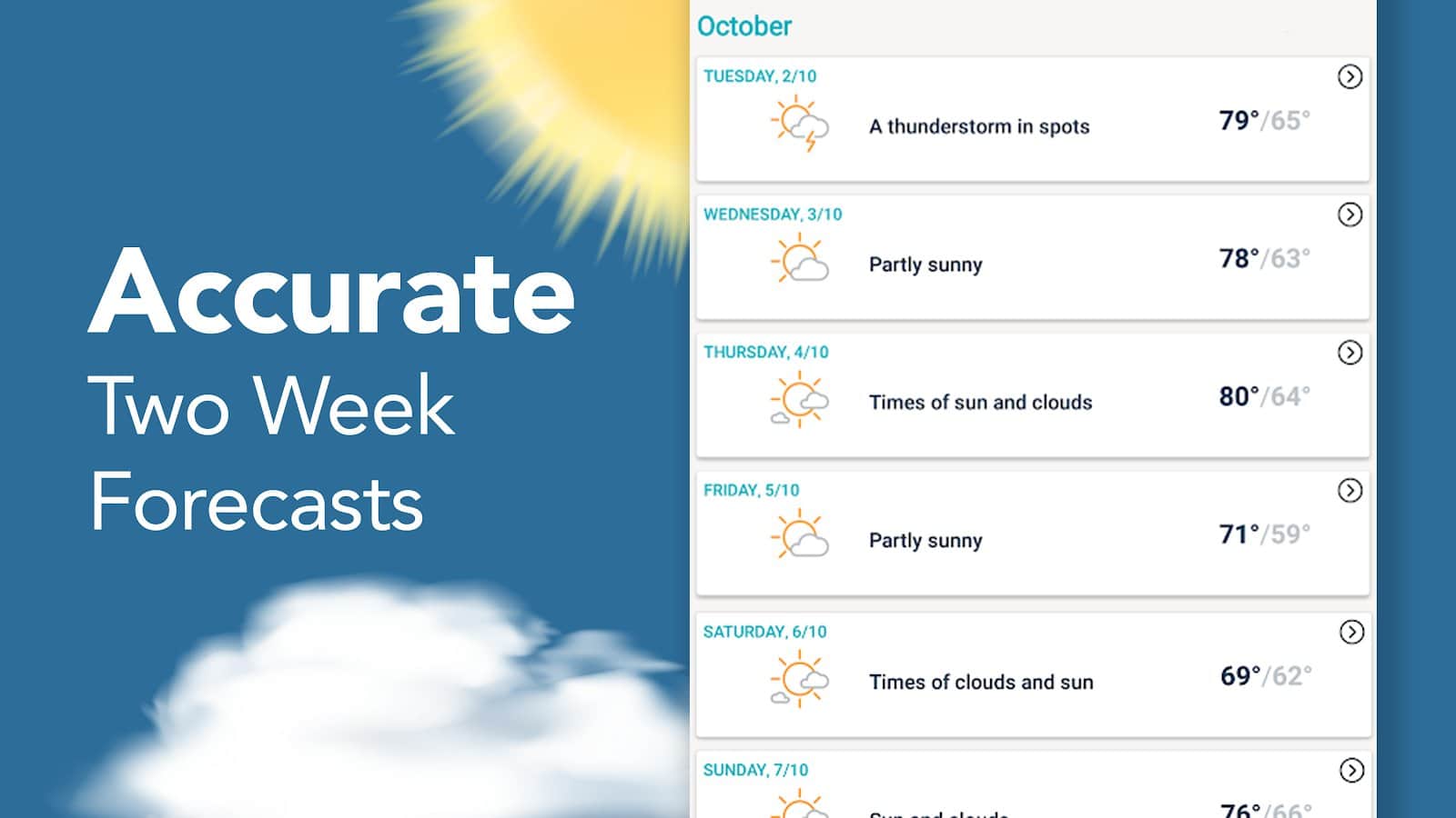 Погода по AccuWeather for Android. Еще одна программа о точном состоянии погоды у вас за окном, с набором необходимых функций. Скачиваем, устанавливаем на свой андроид смартфон/планшет и сверяемся с AccuWeather перед тем как выйти из дома, или с работы.