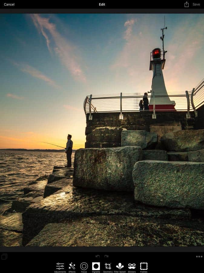 Встроенный редактор имеет отличный набор функций, включающий изменение цветовой температуры, контраста, насыщенности. Предусмотрена также обрезка и выравнивание горизонта.