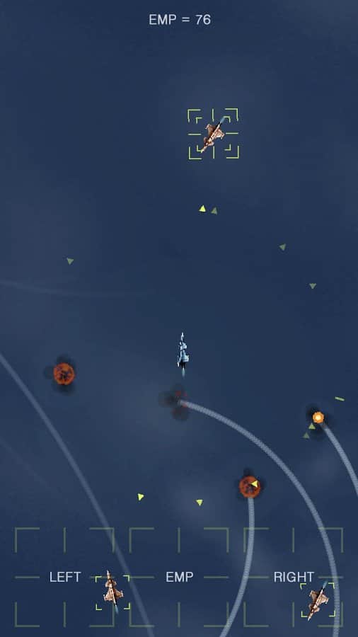 Управление. Три кнопки. Влево, вправо и между ними кнопка EMP. Не сказал бы что управление кривое или топорное. Единственное это распоряжение этих кнопок из-за неоптимизации (кнопки довольно высоко, ибо располагатся должны в самом низу мобилы).