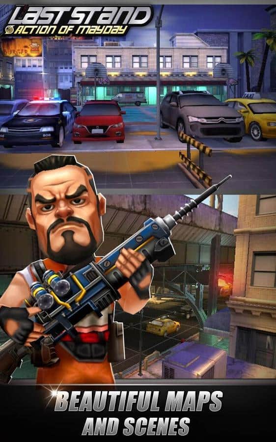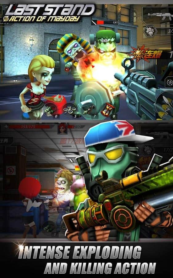Action of Mayday: Last Stand – В канун Рождества 2027 года, новый никому неизвестный вирус распространяется по миру по разным континентам и превращает большую часть человечества в тупых кровожадных зомби. Всё человечество находится на грани вымирания. Тем кому посчастливилось выжить пришлось приспосабливаться к новому миру. Они начали сражаться против зомби и заново учиться жить среди мертвецов. Любая вылазка в город может стать для вас последней. Вы являетесь членом неформальной организации по уничтожению зомби. По сути это шутер от первого лица в котором нужно отстреливать мертвецов. на протяжении более 80 миссий вы будете освобождать землю от мертвых.