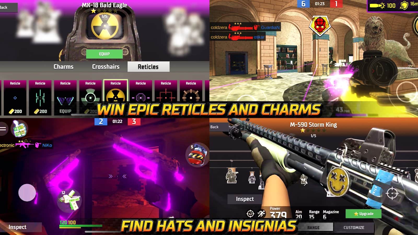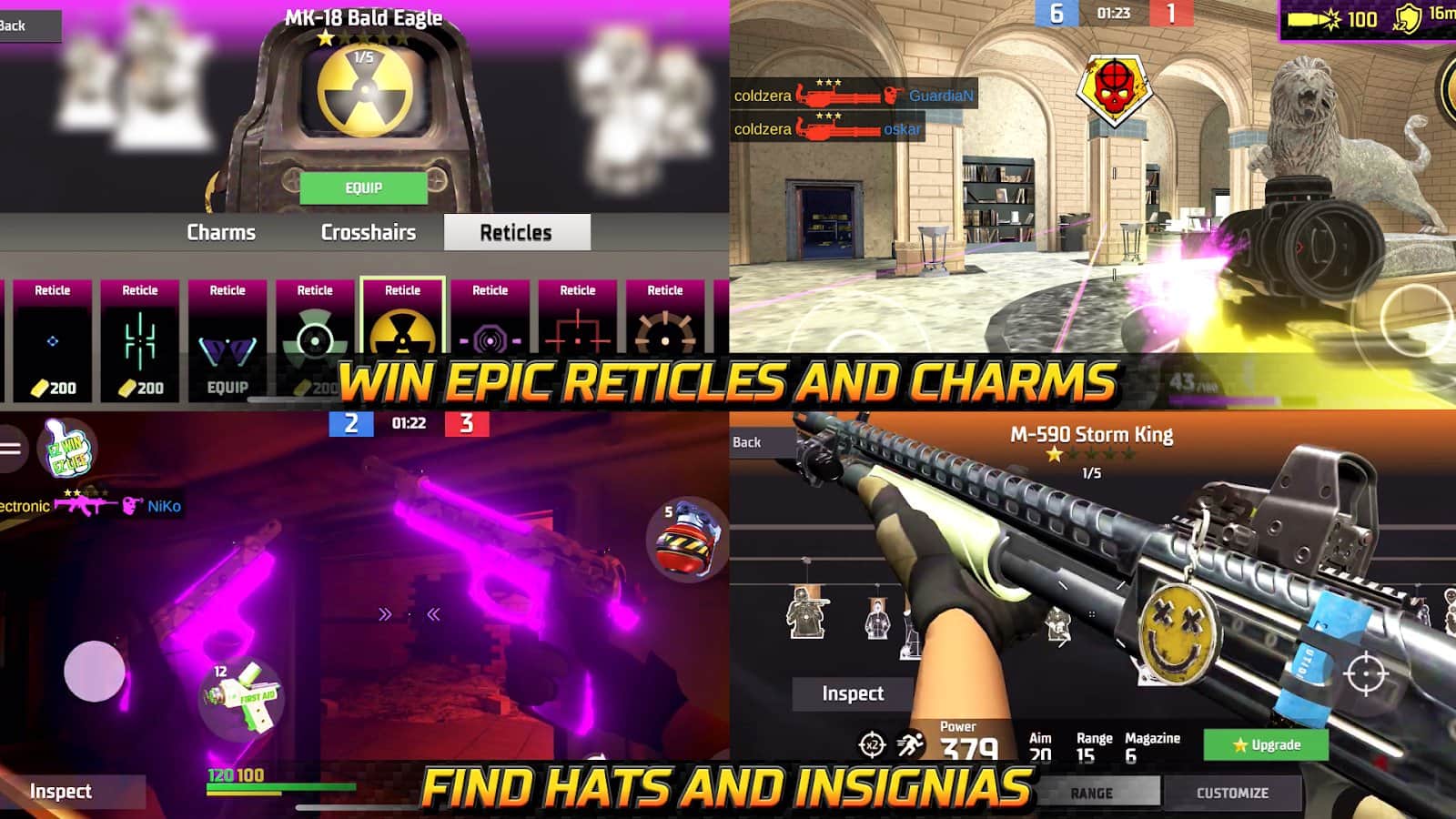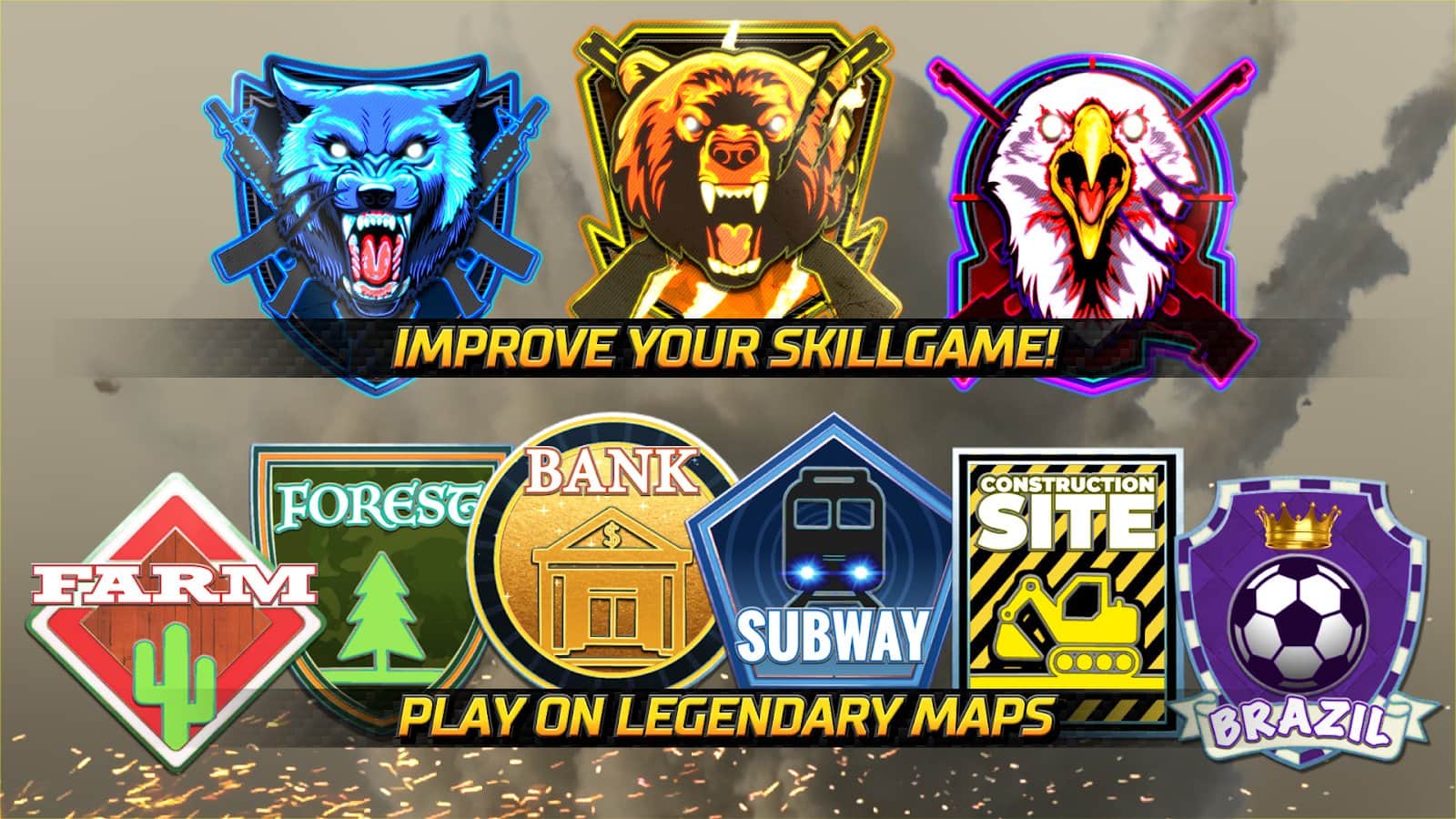 - Медали за достижения внутри матча и бонусы рейтинга. Качайся быстрее!
