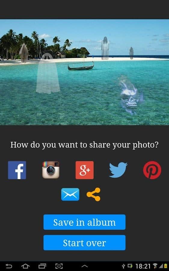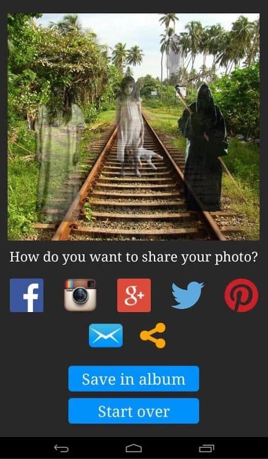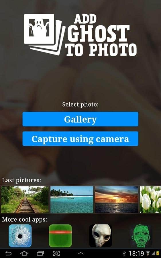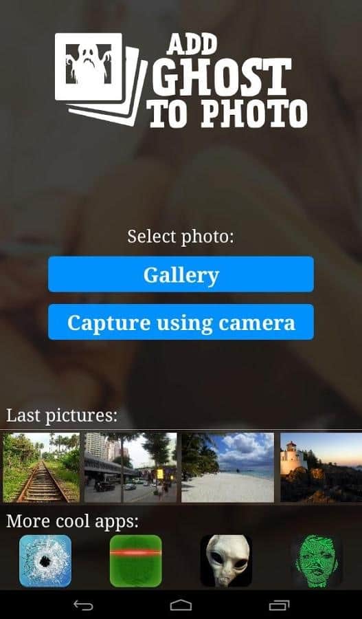Add Ghost to Photo - Хотите напугать своих друзей? Или же просто любите мистику? Тогда добавьте приведение на ваши фотографии. Это весьма простое и забавное приложение с помощью которого вы добавите одного из множества приведений на любую фотографию. В этом приложении есть не только приведения но и сама смерть, целый набор ужасающих текстур, с помощью которых вы сможете испугать своих друзей. Добавлять их очень просто, а так же можно менять их размер и угол наклона.