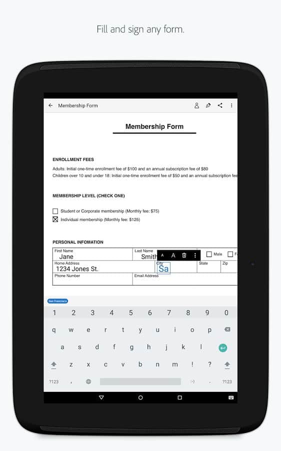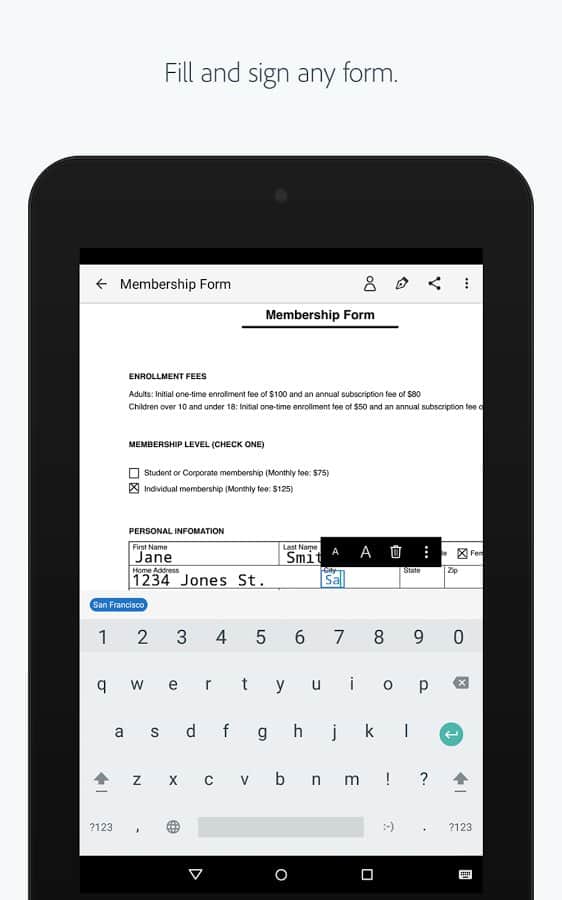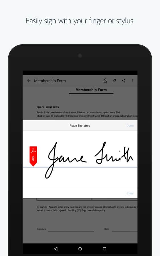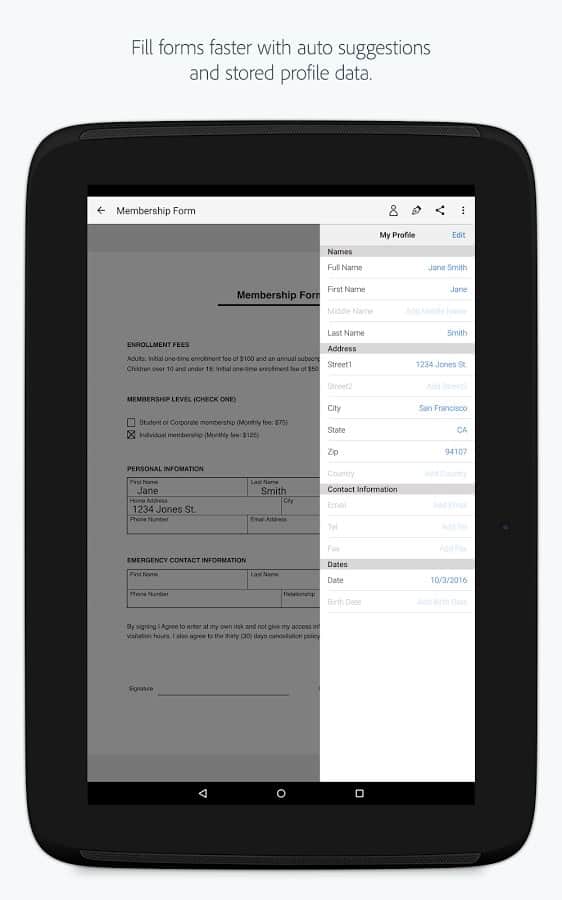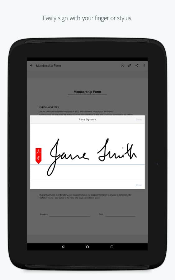 Adobe Fill & Sign DC - Уникальное приложение от популярного разработчика. В этот раз Adobe упростил работу всем кто занимается документацией. С помощью этого приложения вы сможете создавать электронные копии документов, при этом не теряя их структуру и даже шрифт. Нужно сделать из обычного документа электронную копию? Да ещё и что бы пустые поля остались? Теперь это не проблема, с этим приложением всё будет быстро и гладко.